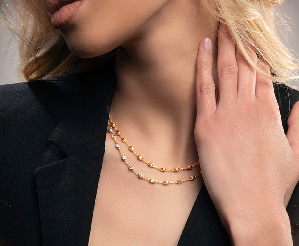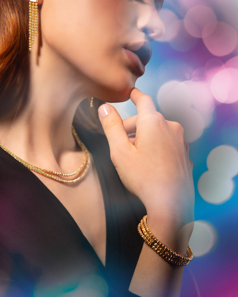 The Crystal collection represents the essence of the Desmos brand and comes both in sterling silver and in 18 carat gold. Every piece of jewelry is made of precious beads that have been diamond-cut for a long-lasting brilliant effect.