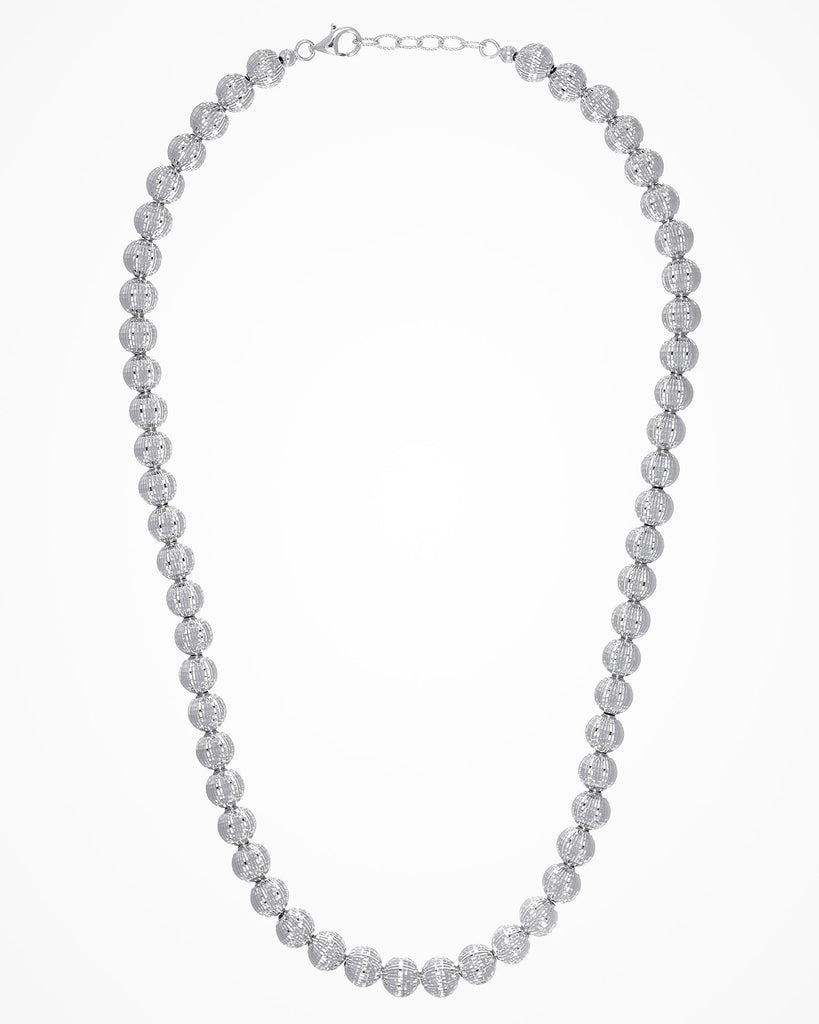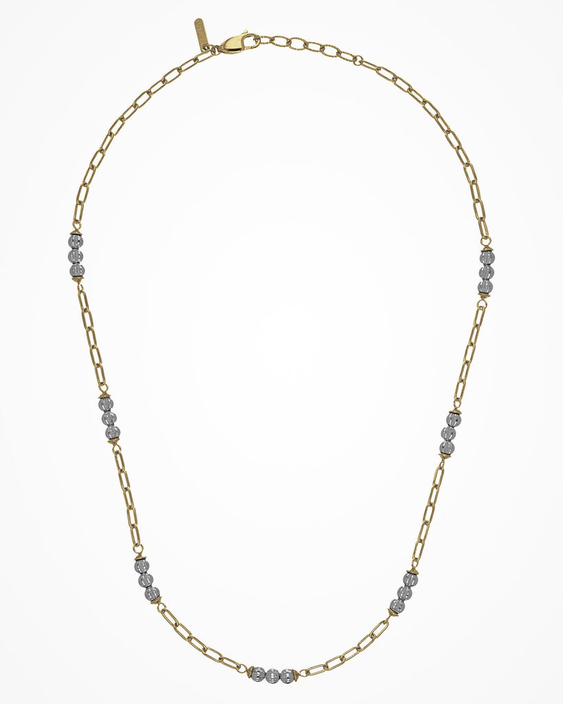 The Crystal collection features a handmade round-element chain, which comes both in silver and in gold. It is a true icon among the Desmos jewelry collections and it is available in several sizes and in different designs. All Crystal jewels share the original diamond-cut beads that provide a unique long-lasting shine.
