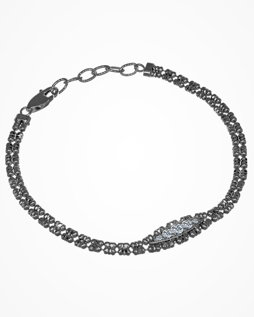Silver bracelet made of four diamond-cut bead chains linked together and embellished with zircon-set features.