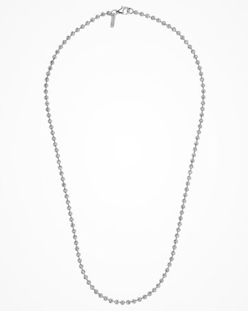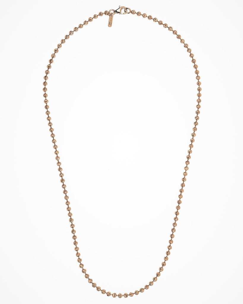 Silver necklace with silver beads linked by a slim chain. The diamond-cutting gives each element a longlasting gleam.