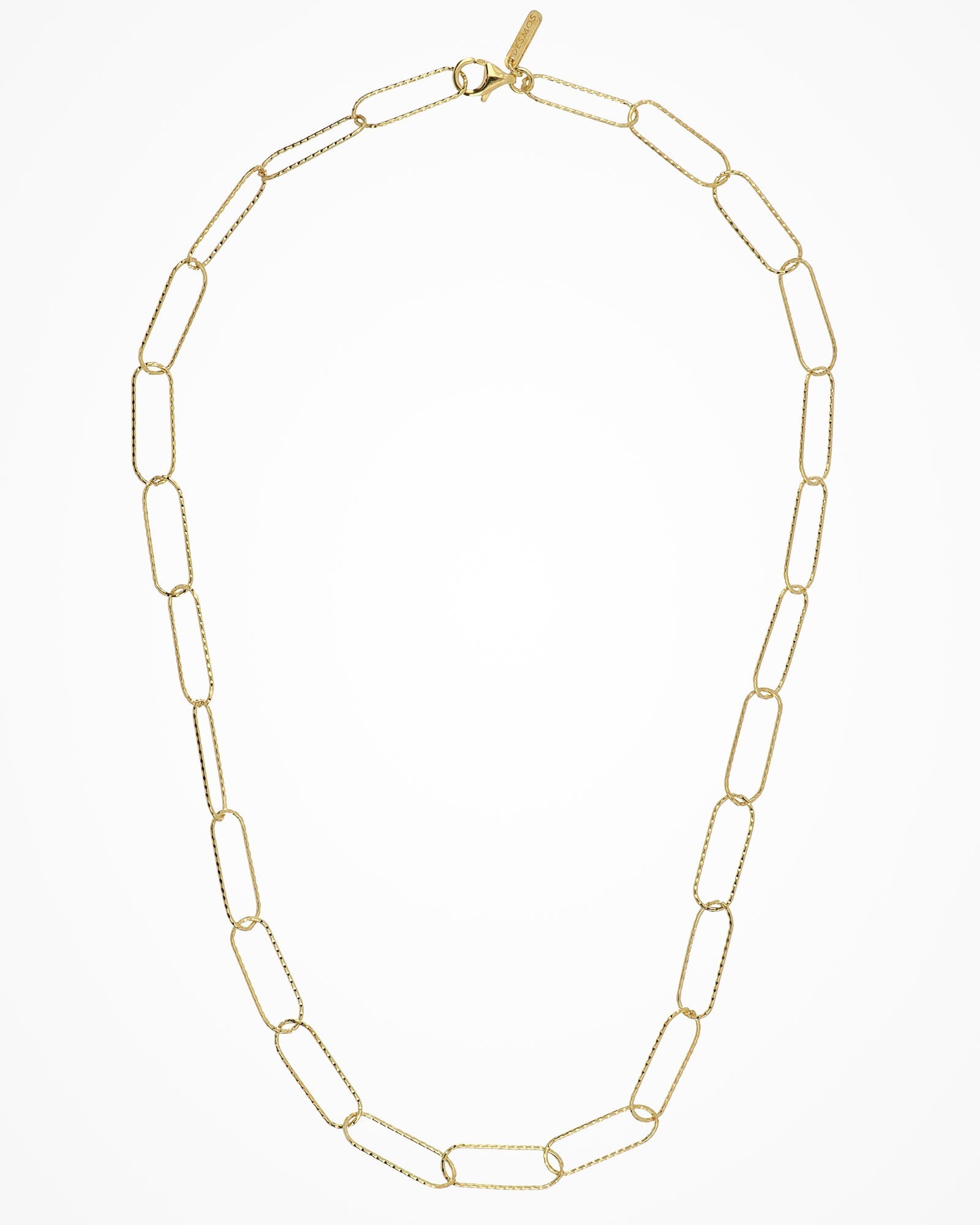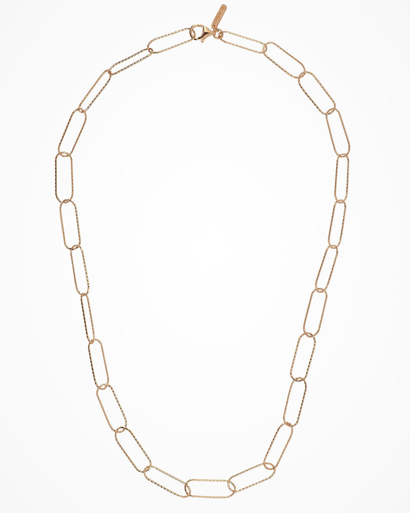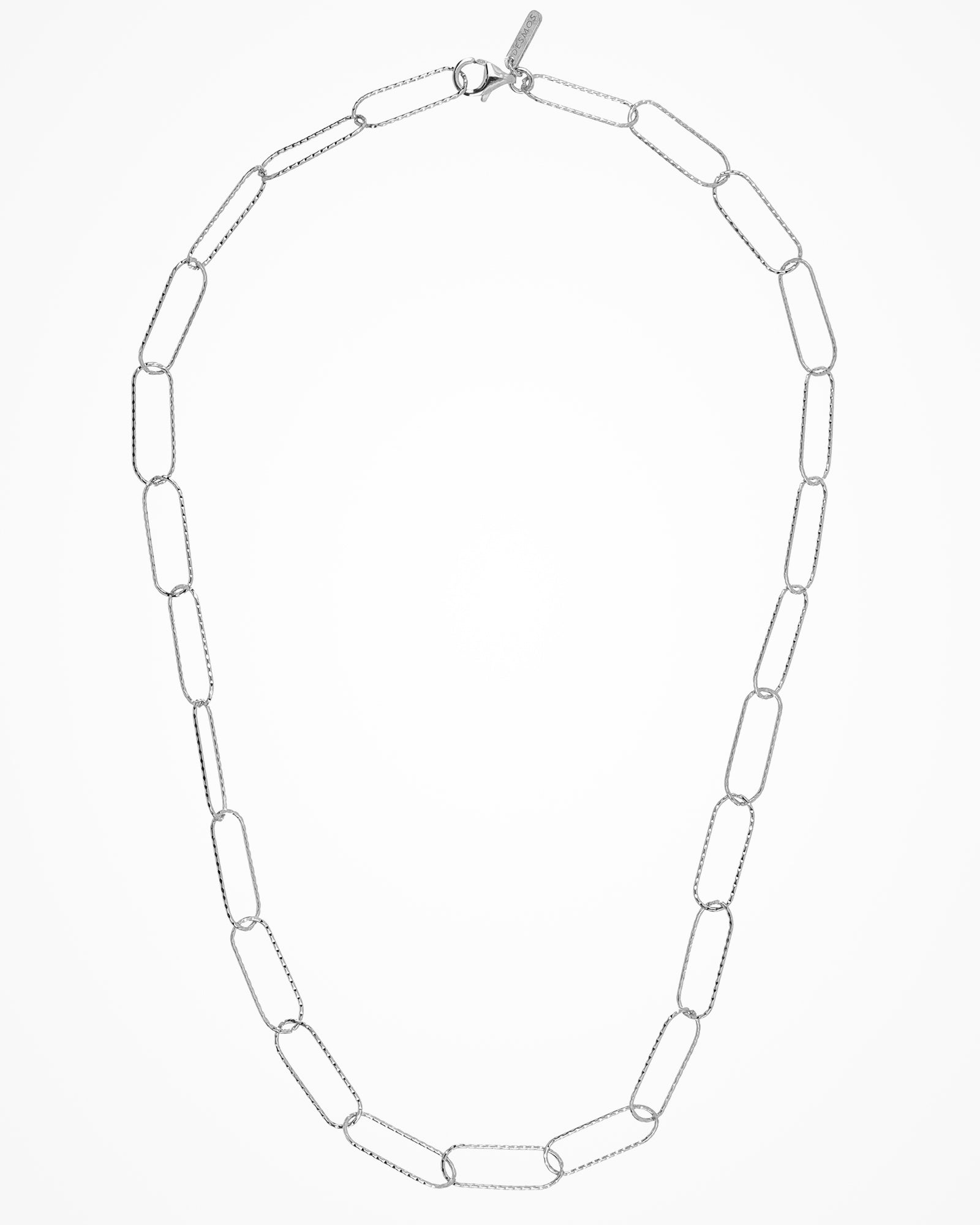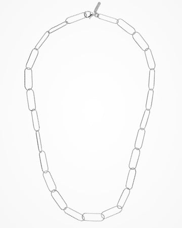Silver necklace with large paper clip links, minimal and contemporary.