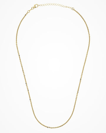 Gold necklace made of a slmi chain featuring a minimal design.