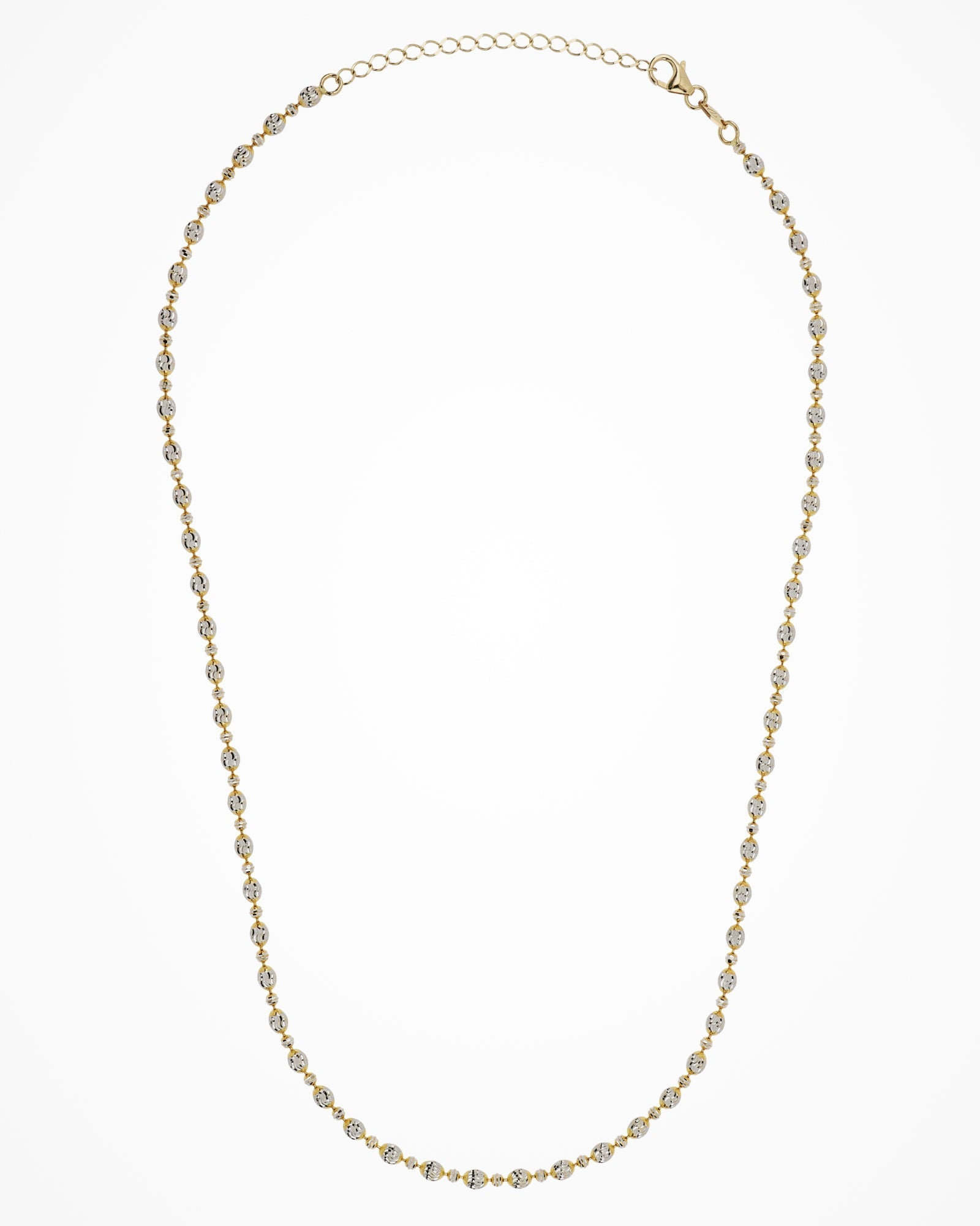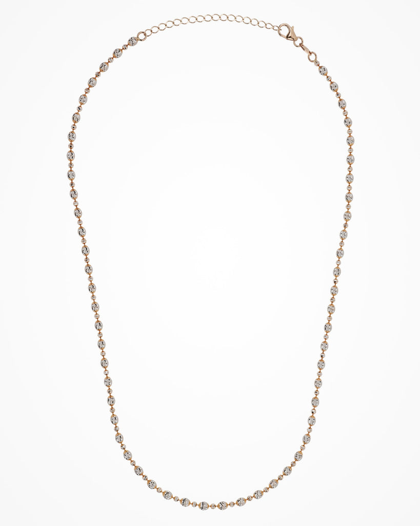 Ball necklace with alternating spherical and oval elements in 18 KT gold, developed internally with the diamond-cutting technique.