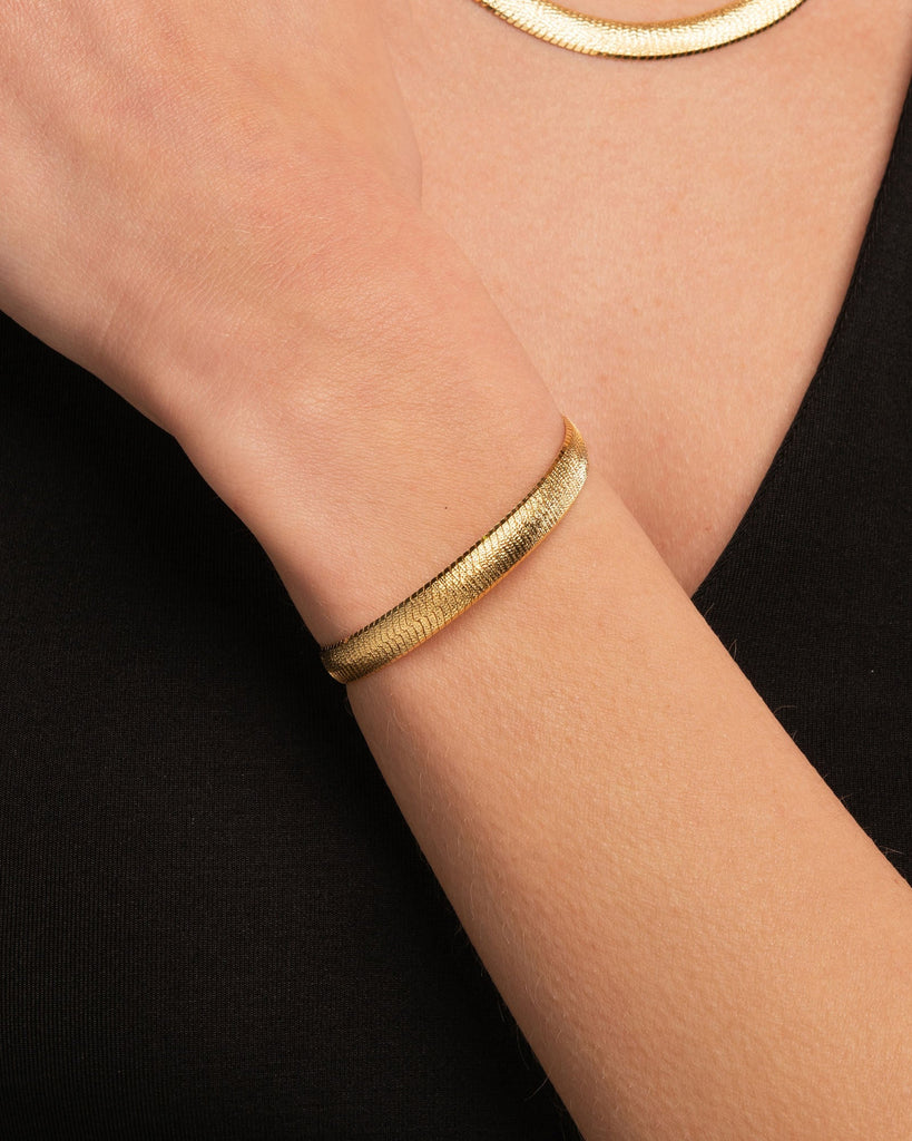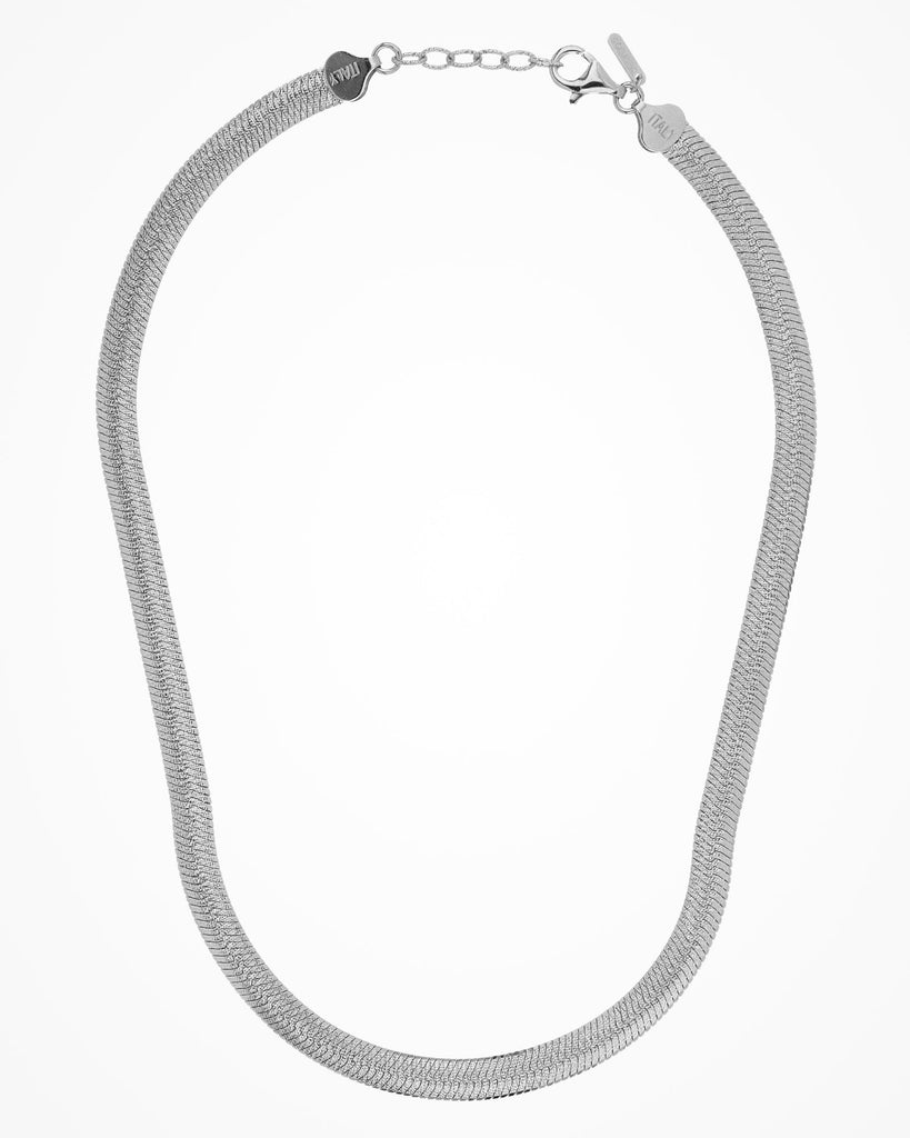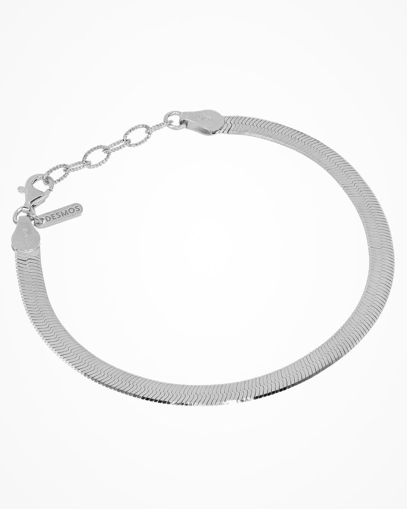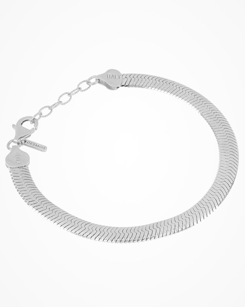 The Herringbone collection, as well as Wonder and Stardust, includes very shiny silver bracelets and bracelets. The chain is flat and supple, and the difference from one line and the other is the finishing that alternate shiny patterns along the jewelry surface.