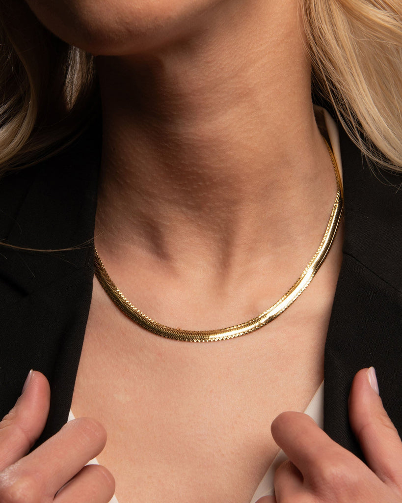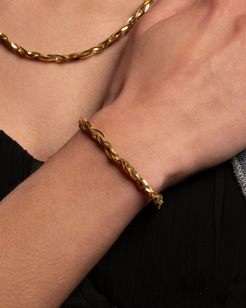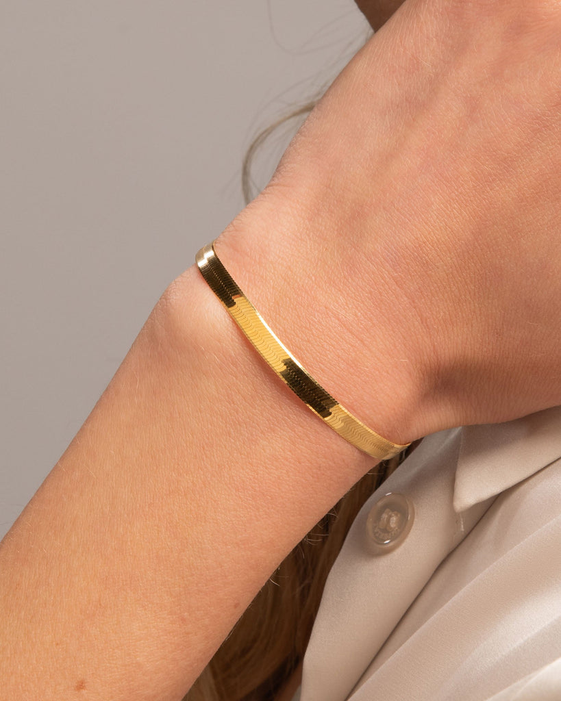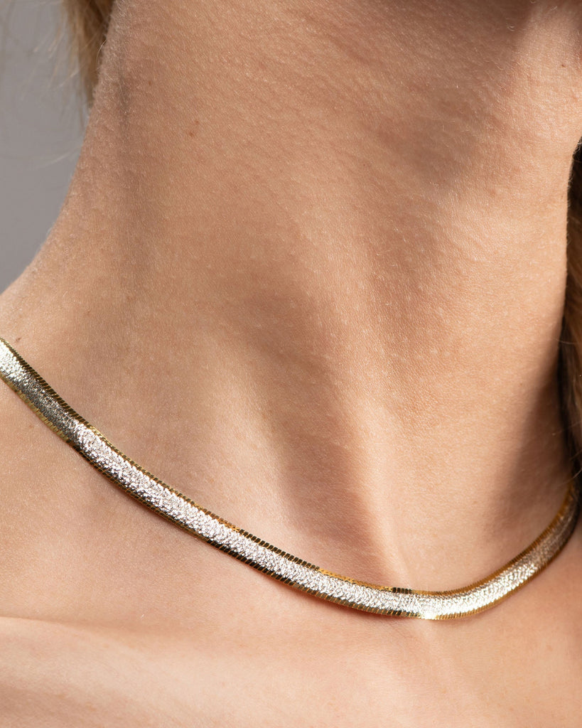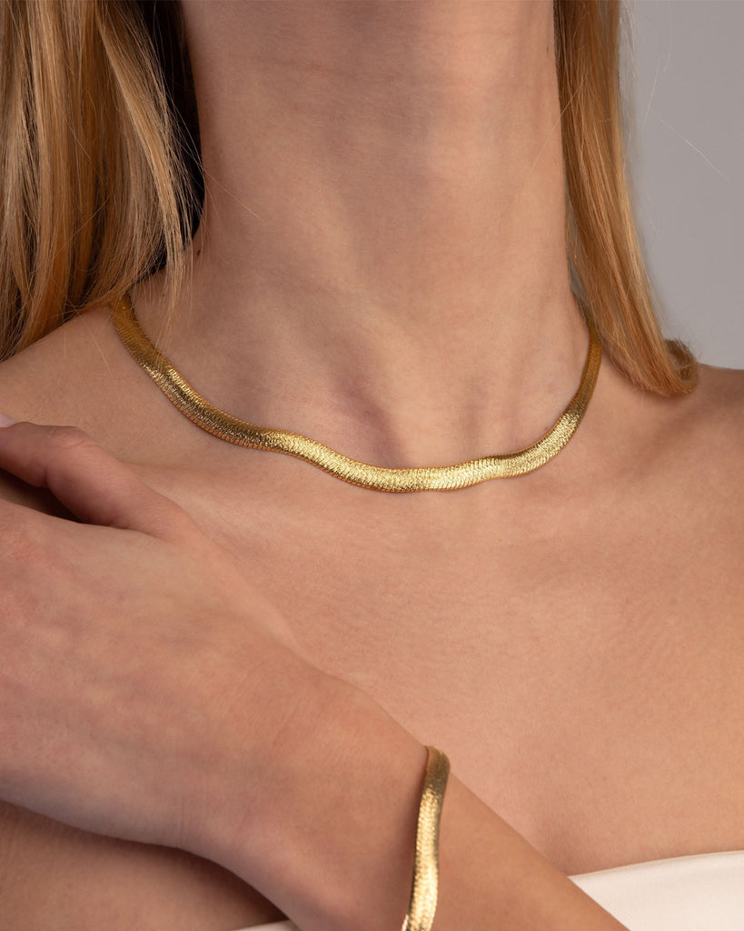 The Herringbone collection, as well as Wonder and Stardust, includes very shiny silver bracelets and bracelets. The chain is flat and supple, and the difference from one line and the other is the finishing that alternate shiny patterns along the jewelry surface.
