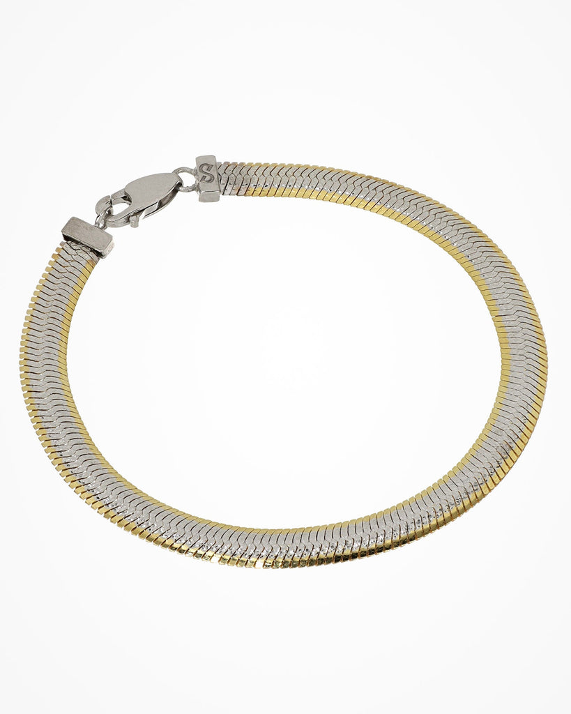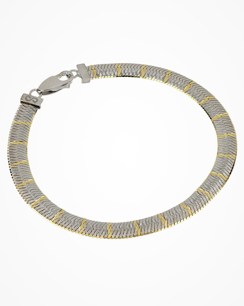 The Herringbone collection, as well as Wonder and Stardust, includes very shiny silver bracelets and bracelets. The chain is flat and supple, and the difference from one line and the other is the finishing that alternate shiny patterns along the jewelry surface.