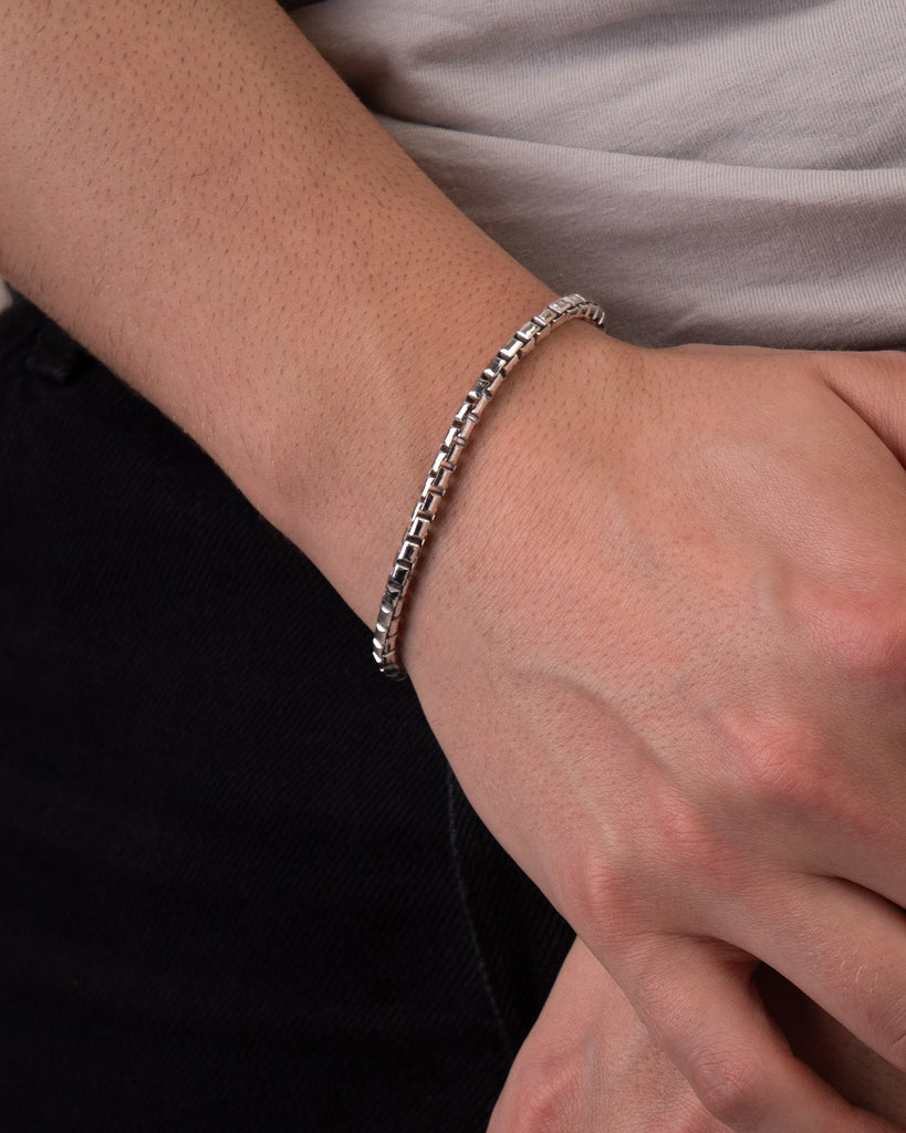 The Venetian line revisits an inconic geometric chain and features silver or gold necklaces and bracelets. The Desmos take on this timeless must-have featured an extra shine provided by the diamond-cutting technique.