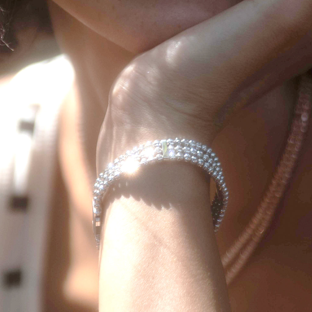 A picture or a video can tell part of the experience, but it is only by wearing a Desmos jewel that you can actually discover the unique gleam coming with every movement. The secret is a precision technique that carves the whole metal surface: chains are made shinier, while the round and oval beads are also decorated with patterns. It is called the diamond-cutting technique and it provides the exceptional shine that has become Desmos signature feature.