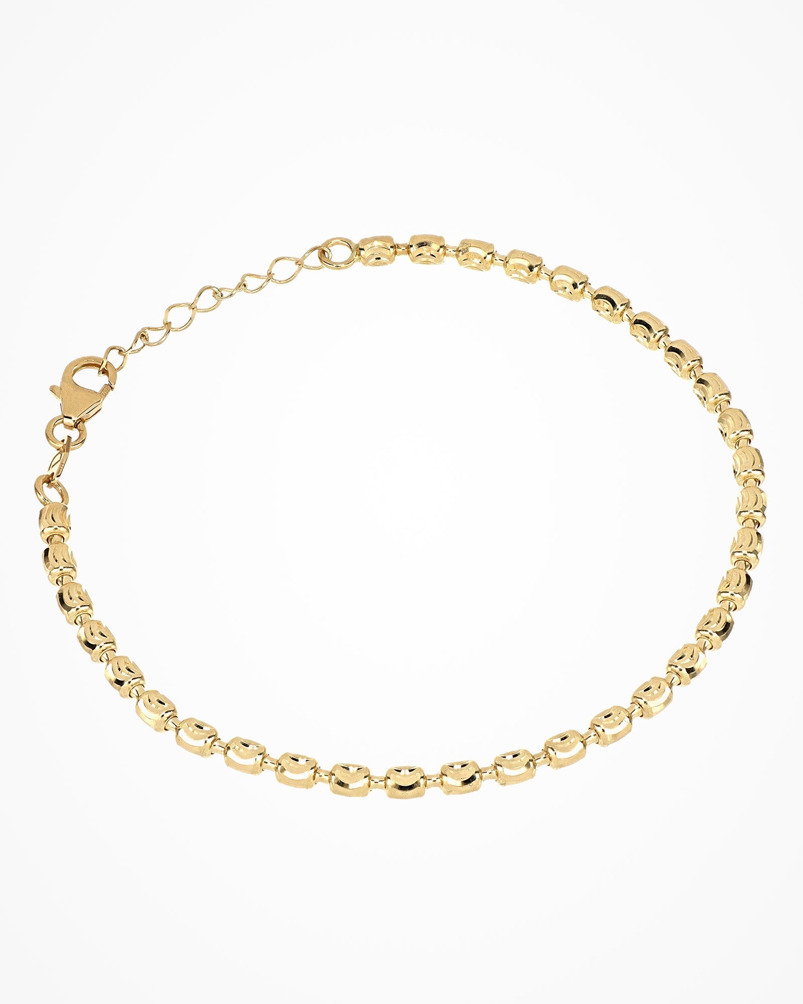 Gold bracelet made of small diamond-cut cylinders which have been especially linked for comfort and flexibility. Each element is diamond-cut to provide a longlasting shine.