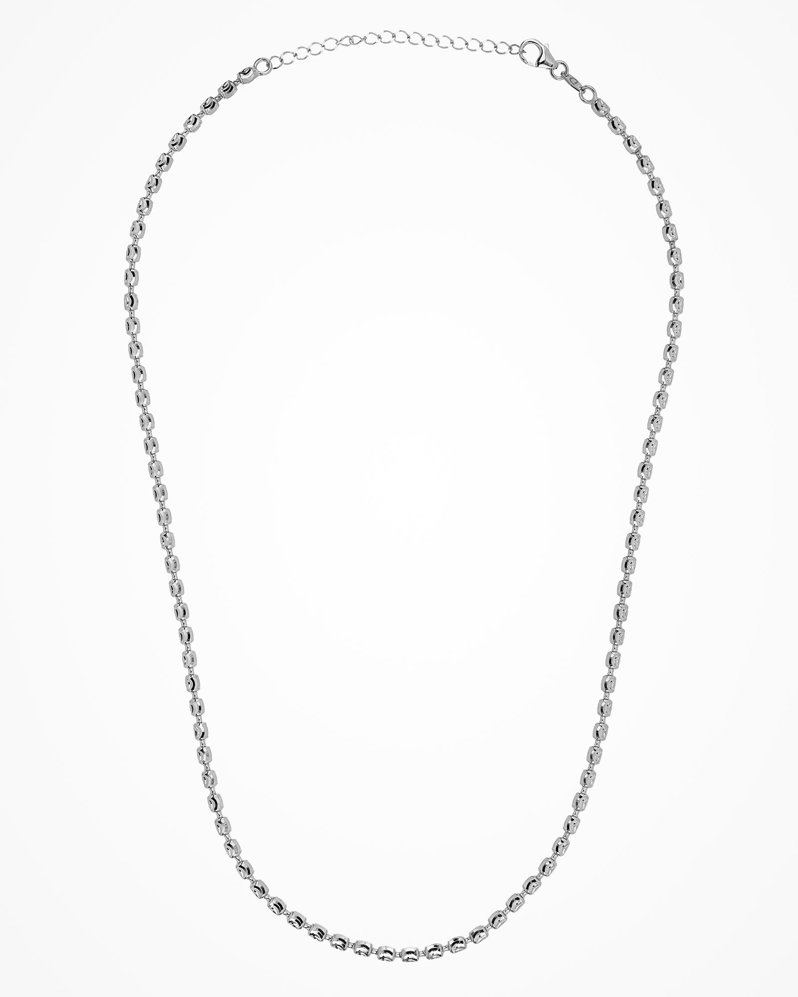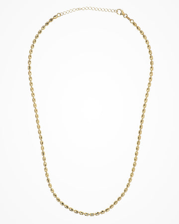 Gold necklace made of small diamond-cut cylinders which have been especially linked for comfort and flexibility. Each element is diamond-cut to provide a longlasting shine.