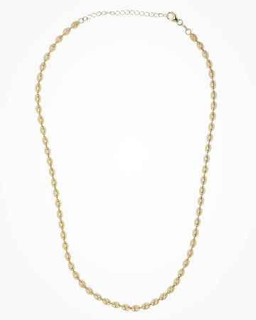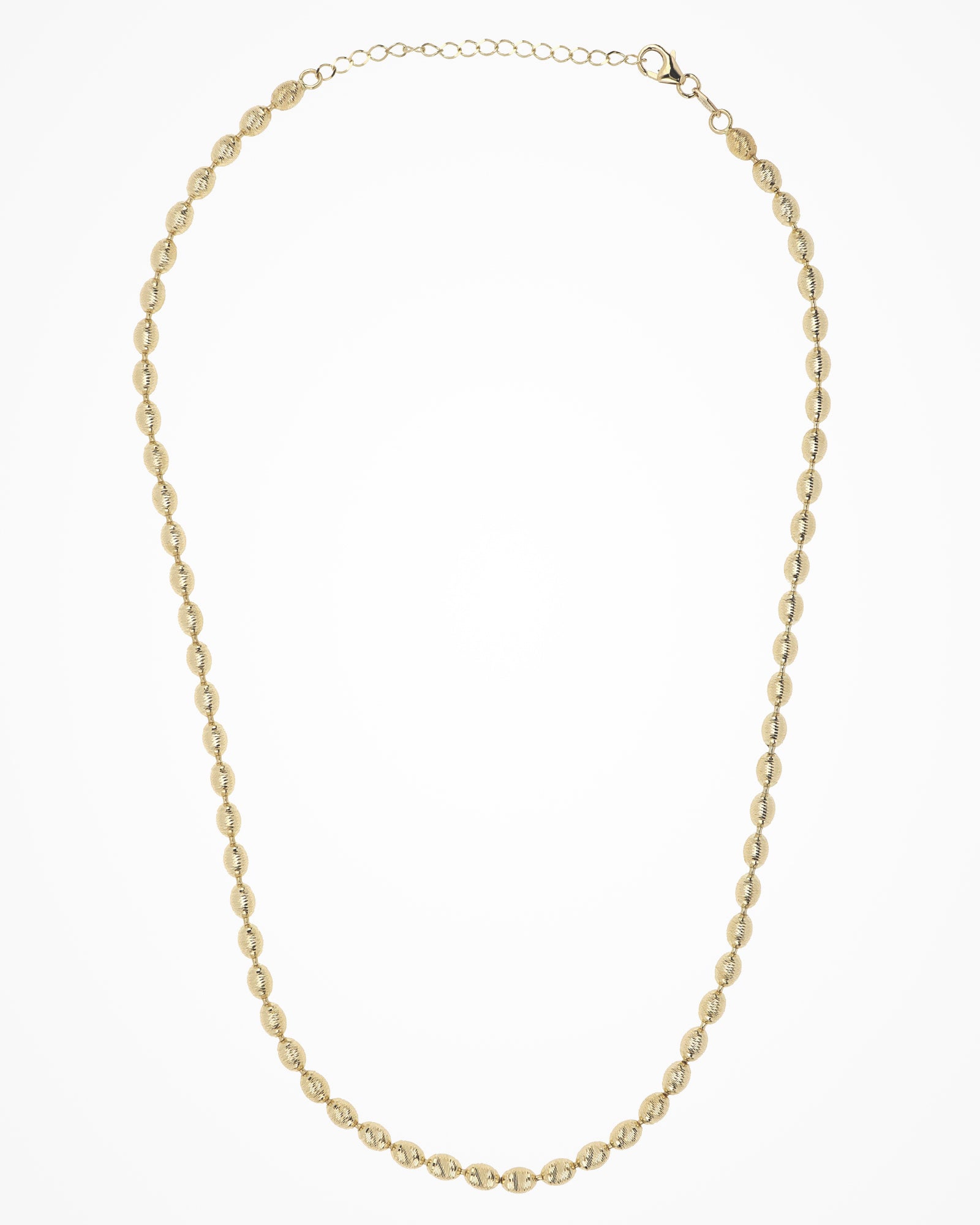 Ball necklace with oval elements in 18 KT gold. Developed internally with Ice diamond technique and is characterized by its brightness and brilliance.