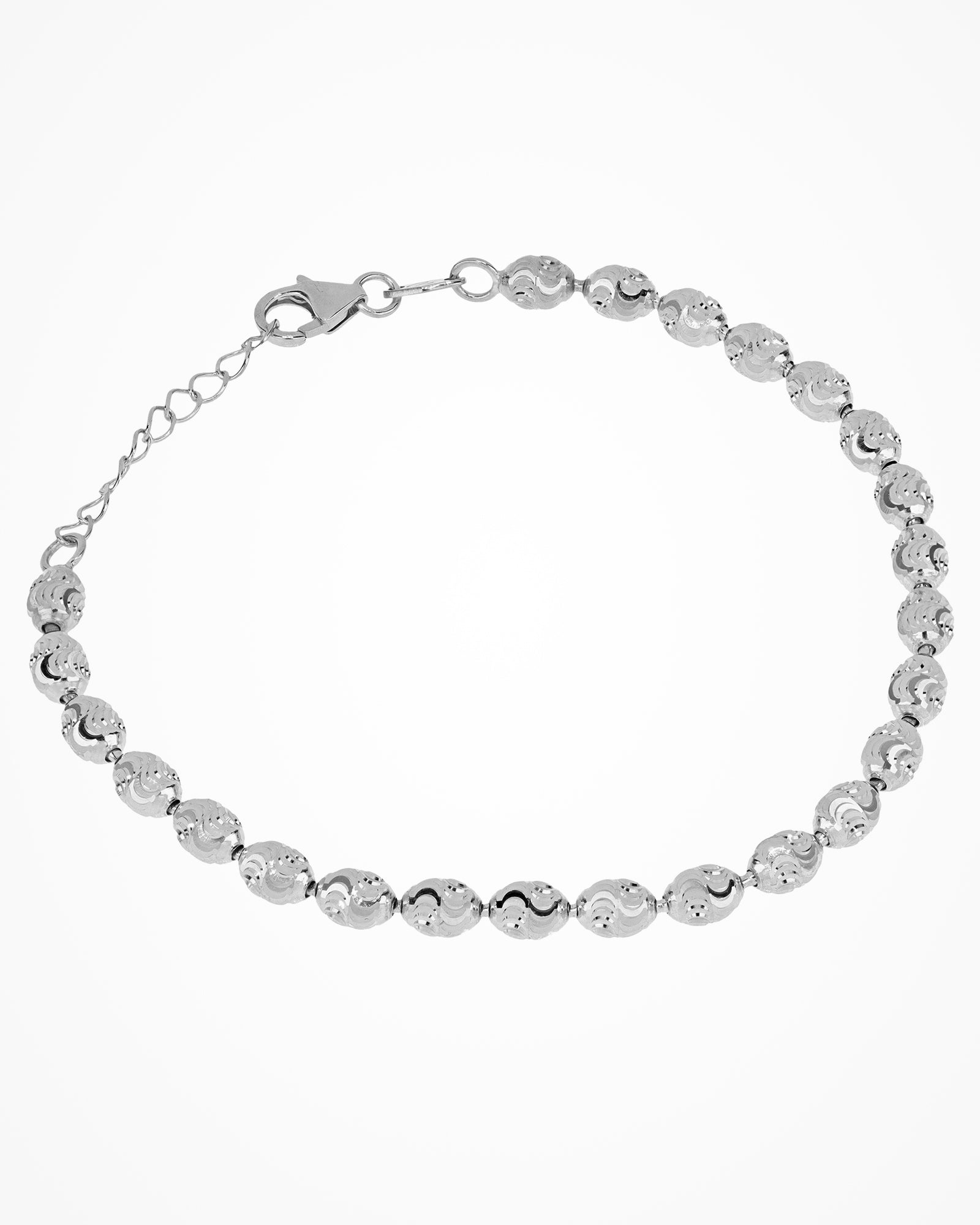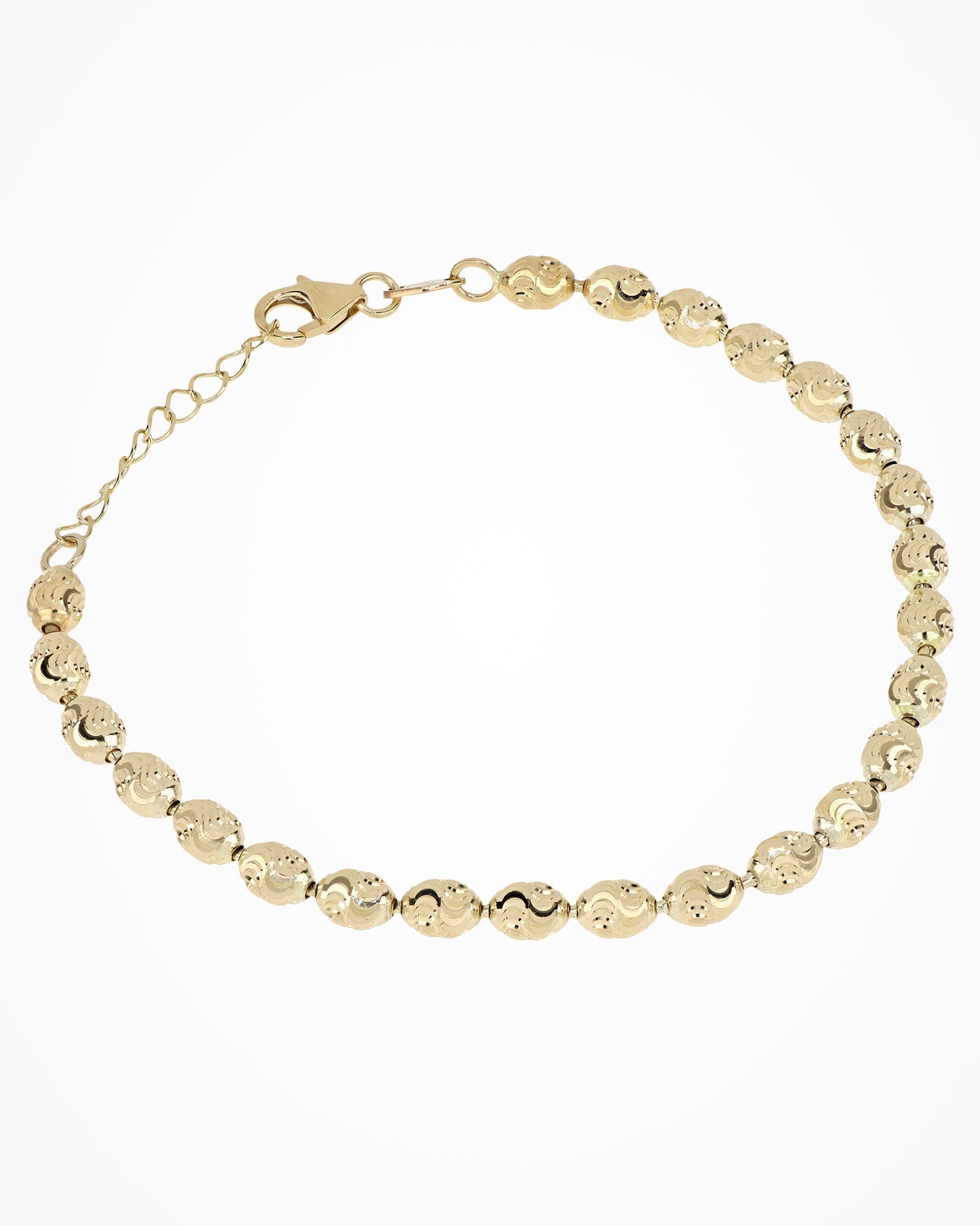 Ball bracelet with elements engraved with diamond technique in 18 KT gold. Developed internally and is characterized by its brightness and brilliance.