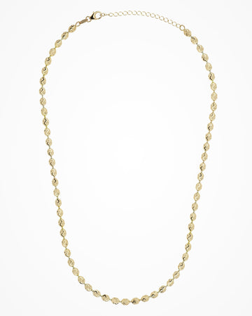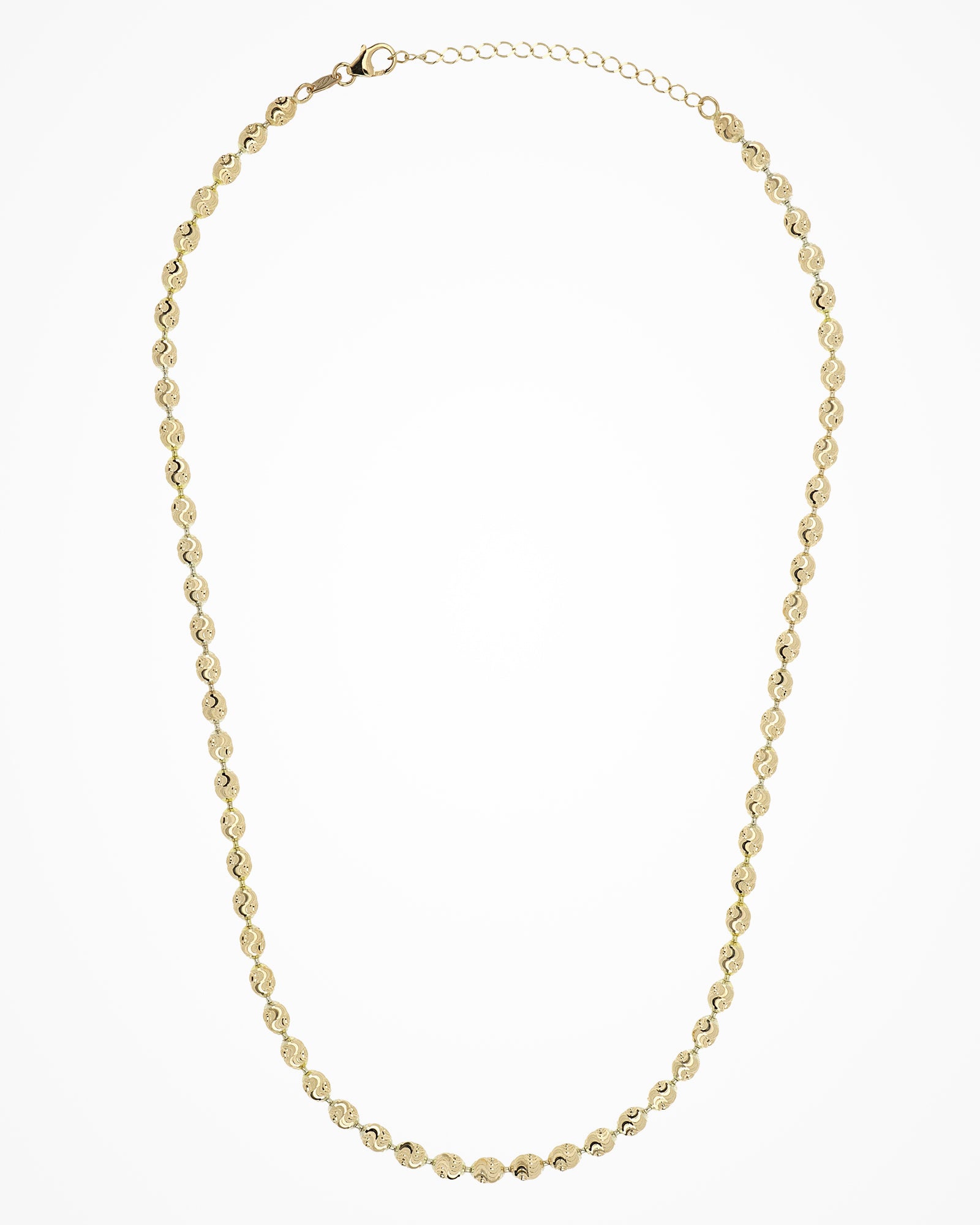 Ball necklace with elements engraved with the diamond technique in 18 KT gold. Developed internally and is characterized by its brightness and brilliance.