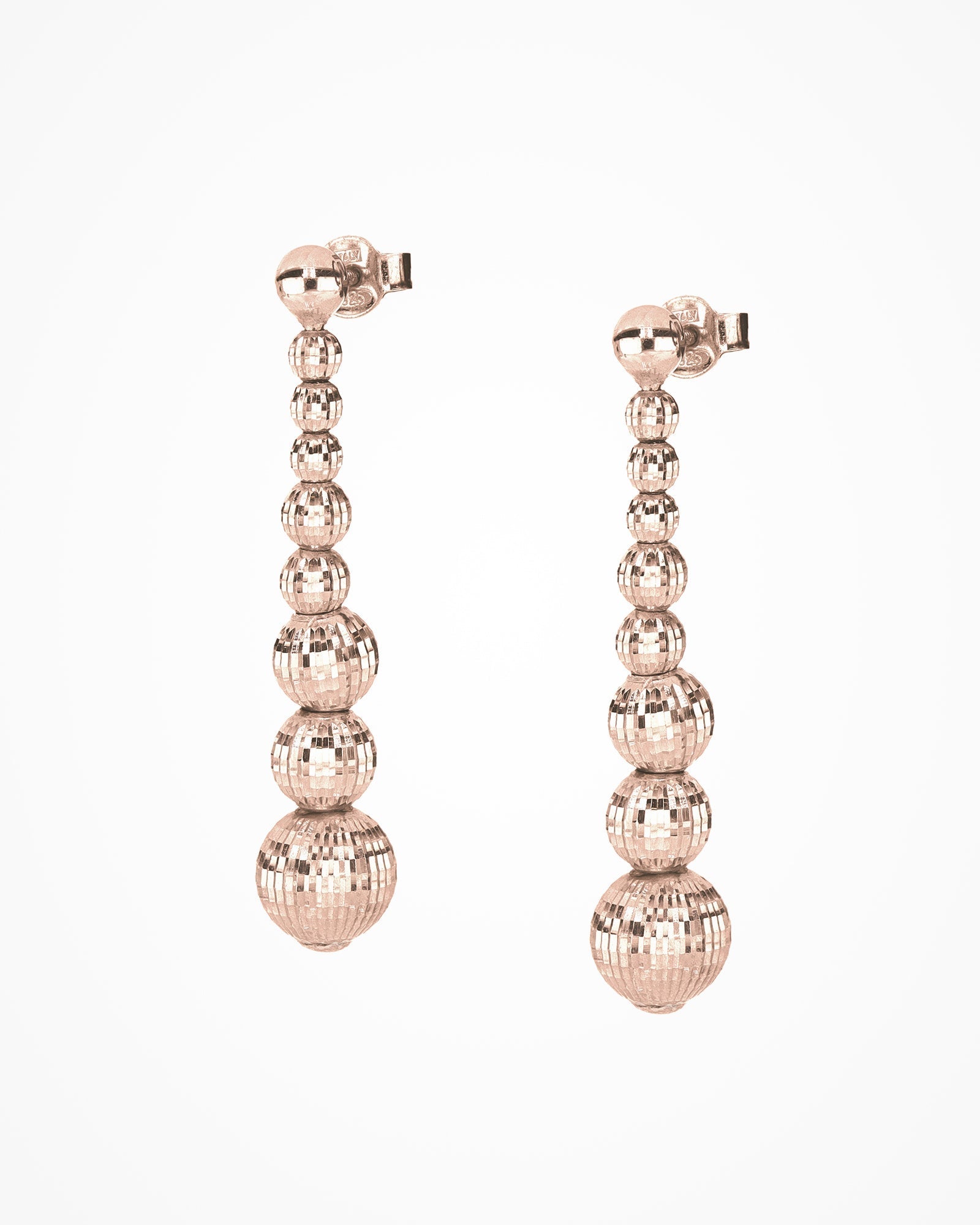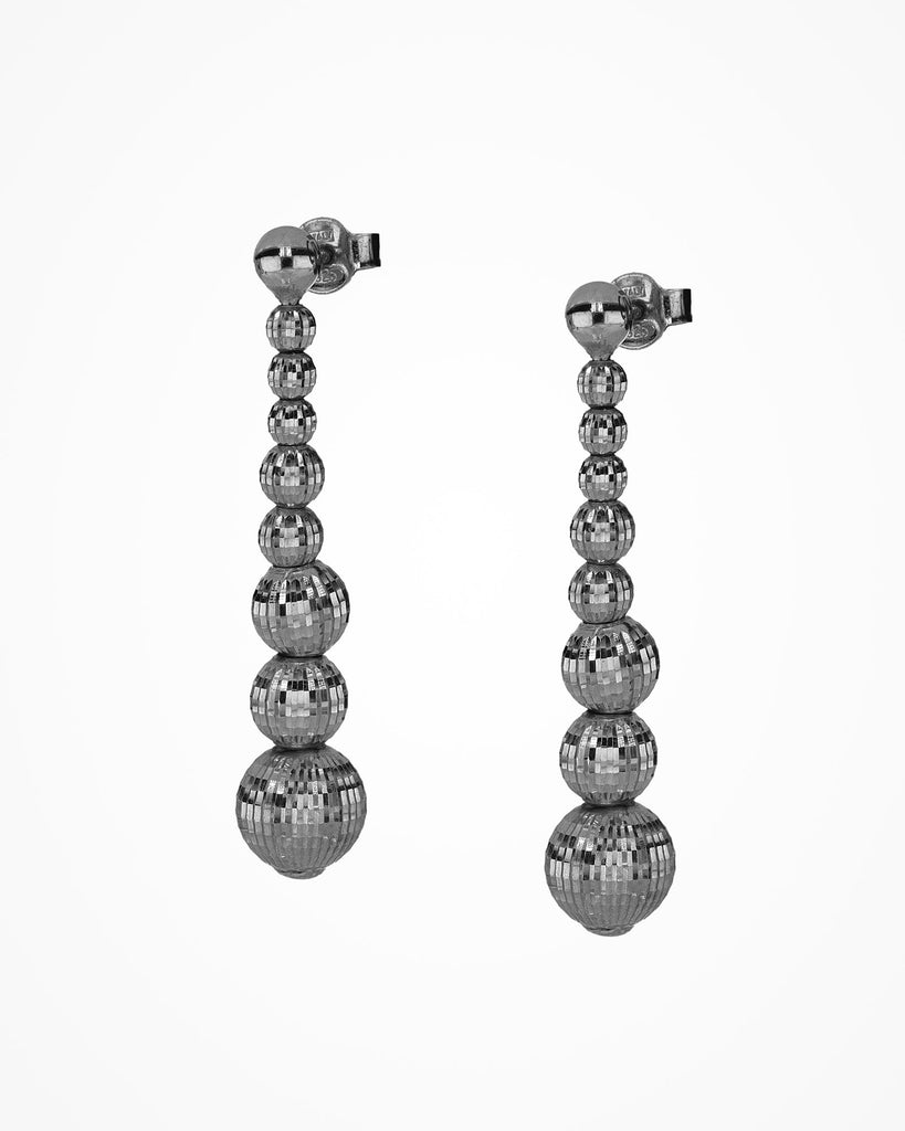 Glamorous and sophisticated sterling silver ball earrings, hand-assembled by combining different elements with an original Crystal facet.