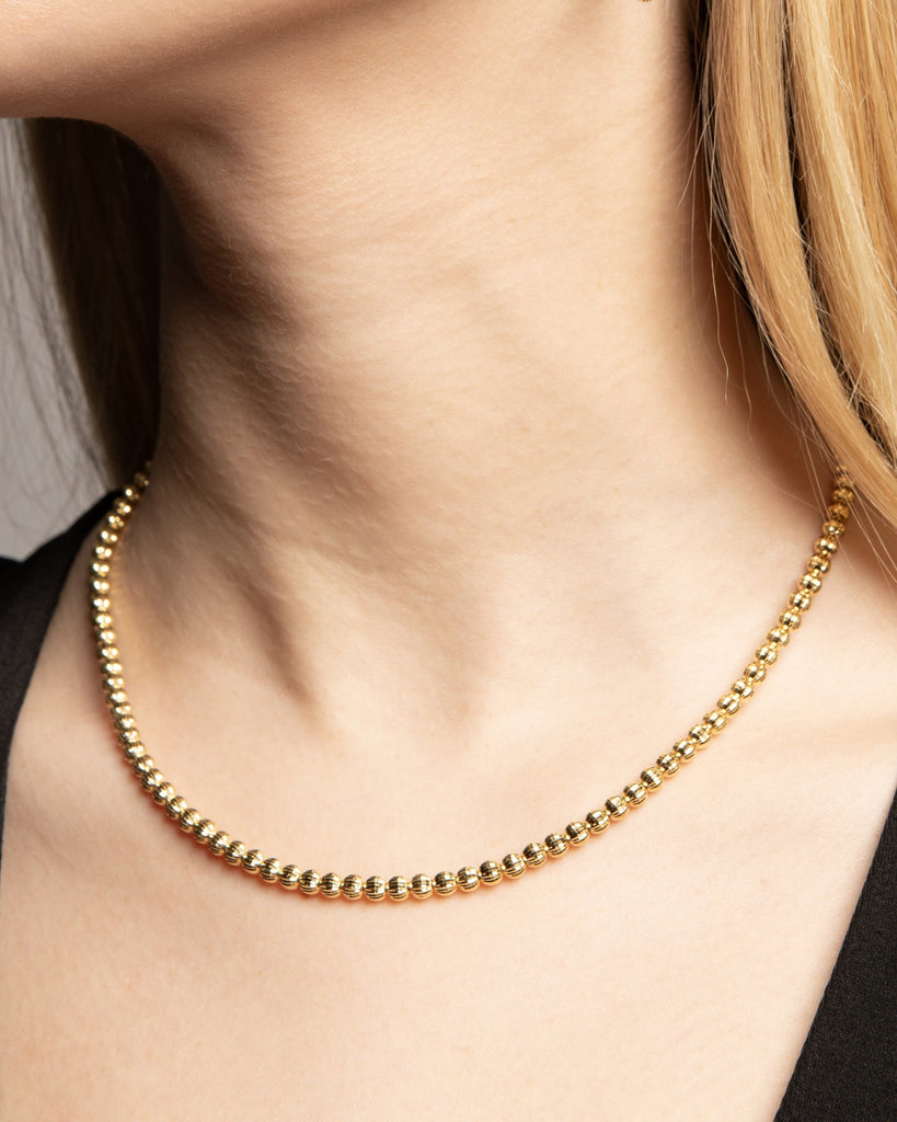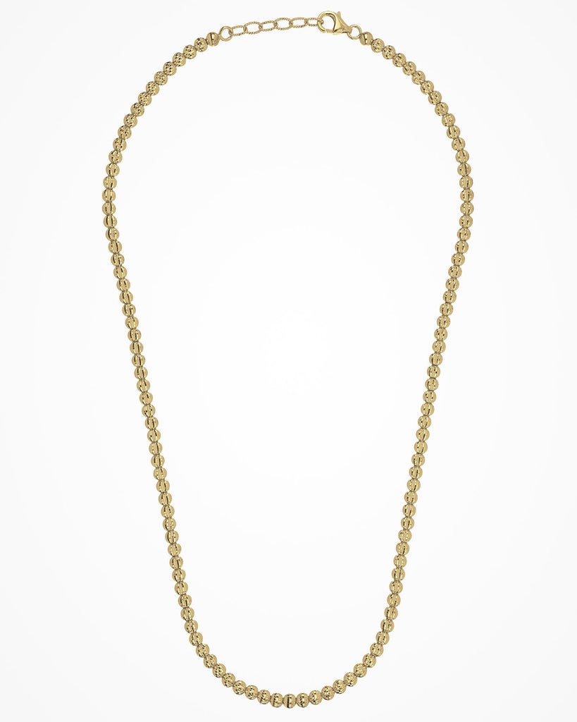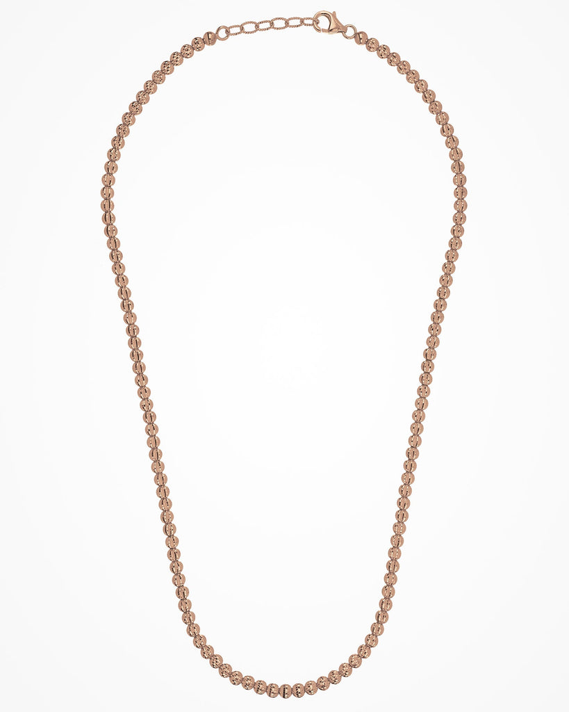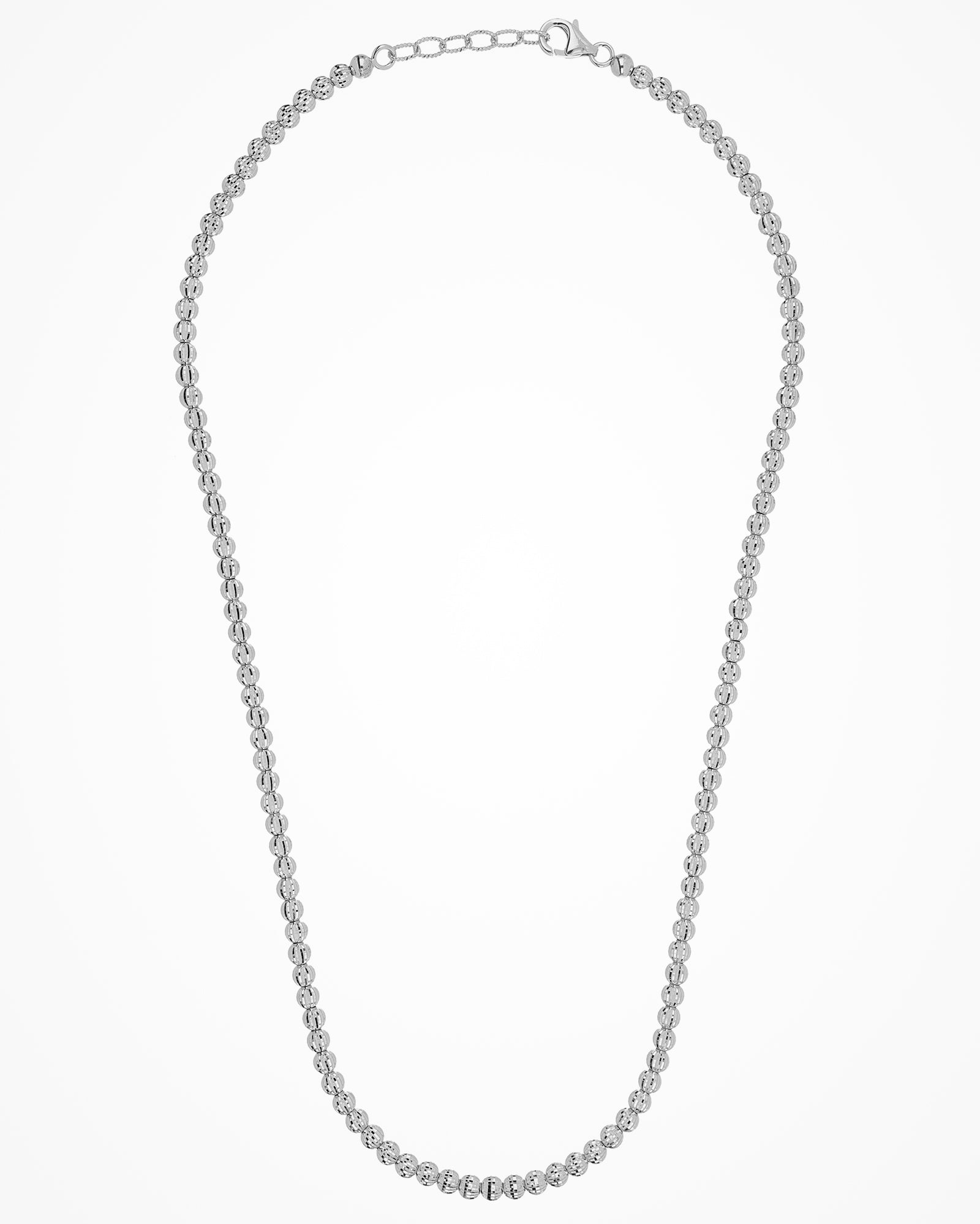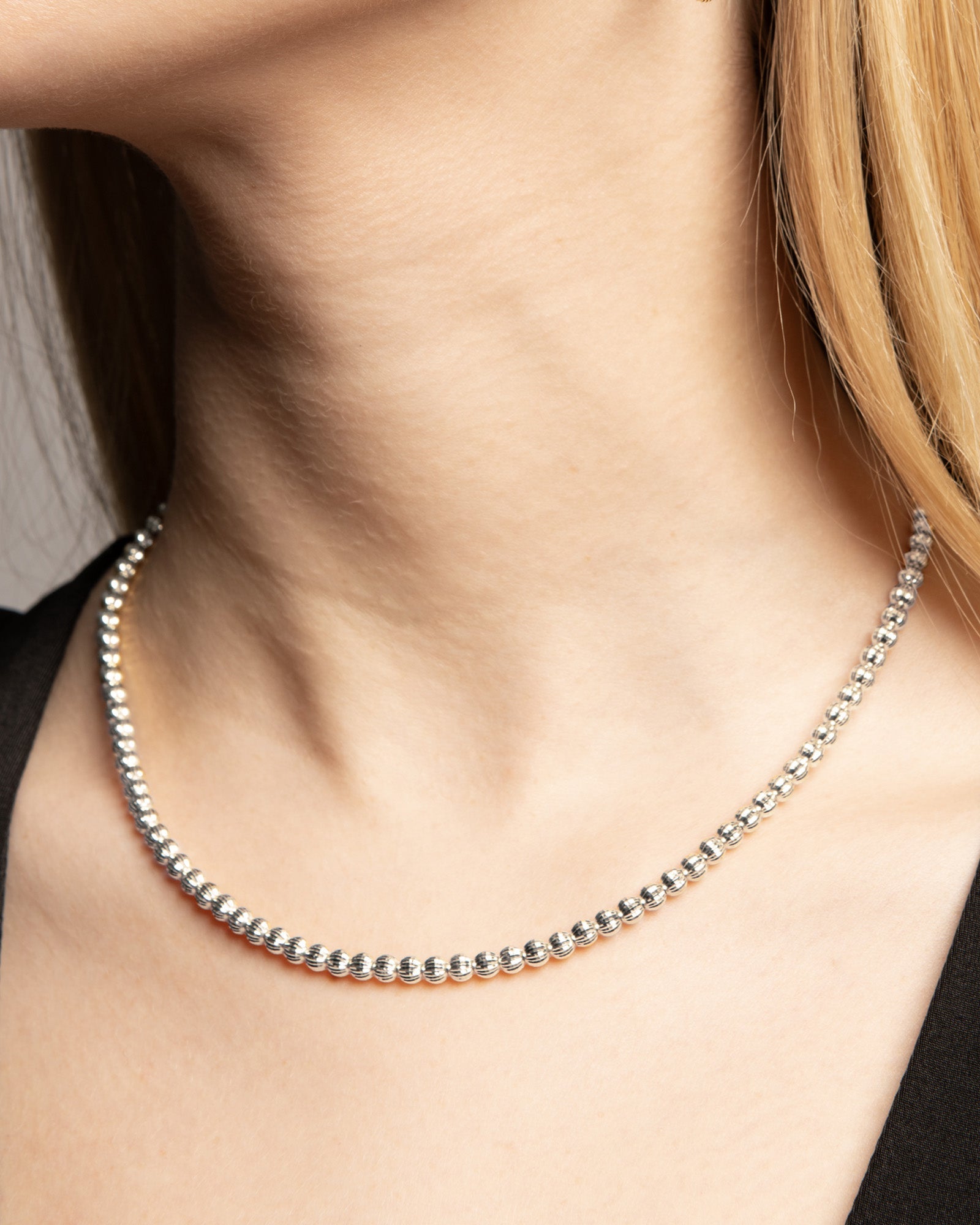 Silver necklace with hand-assembled small silver beads. The original diamond-cut technique provides a unique longlasting brilliance and makes it a statement piece of jewelry.
