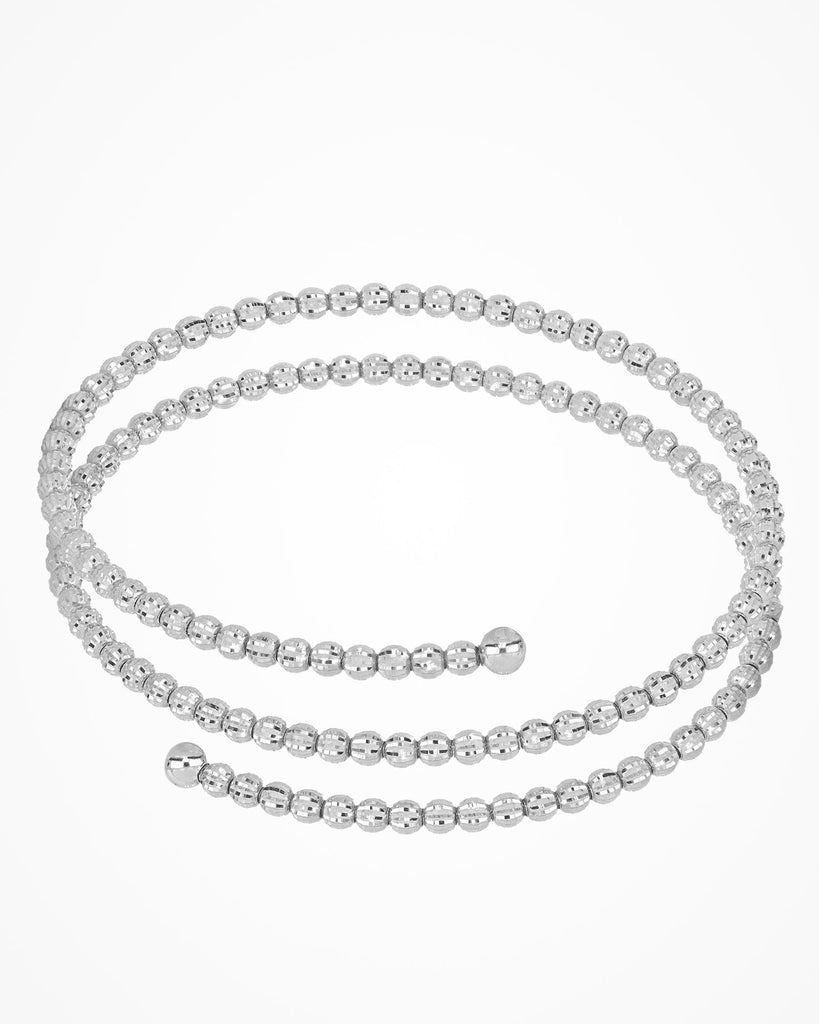 Silver spring bangle with hand-assembled round elements made brilliant by means of the diamond-cutting technique.