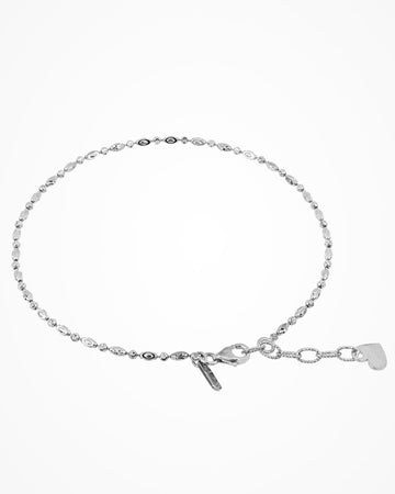 Silver anklet with tiny round and oval diamond-cut elements which provide a gleaming effect.