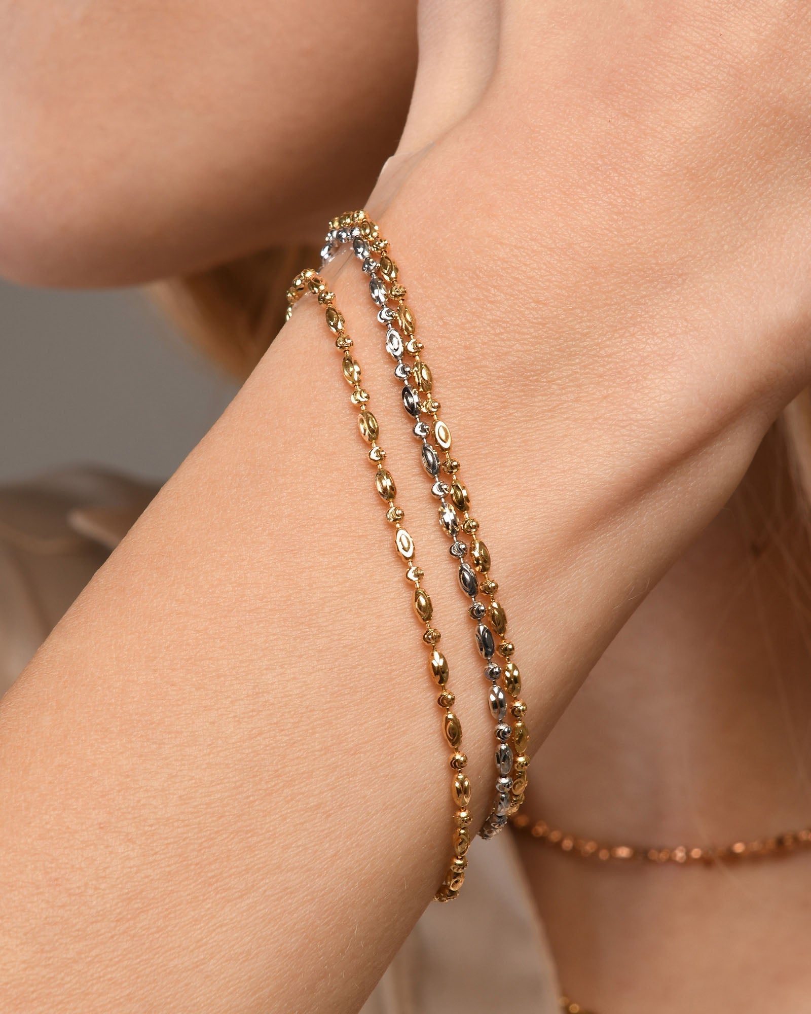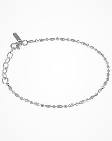 Silver bracelet with tiny round and oval diamond-cut elements which provide a gleaming effect.