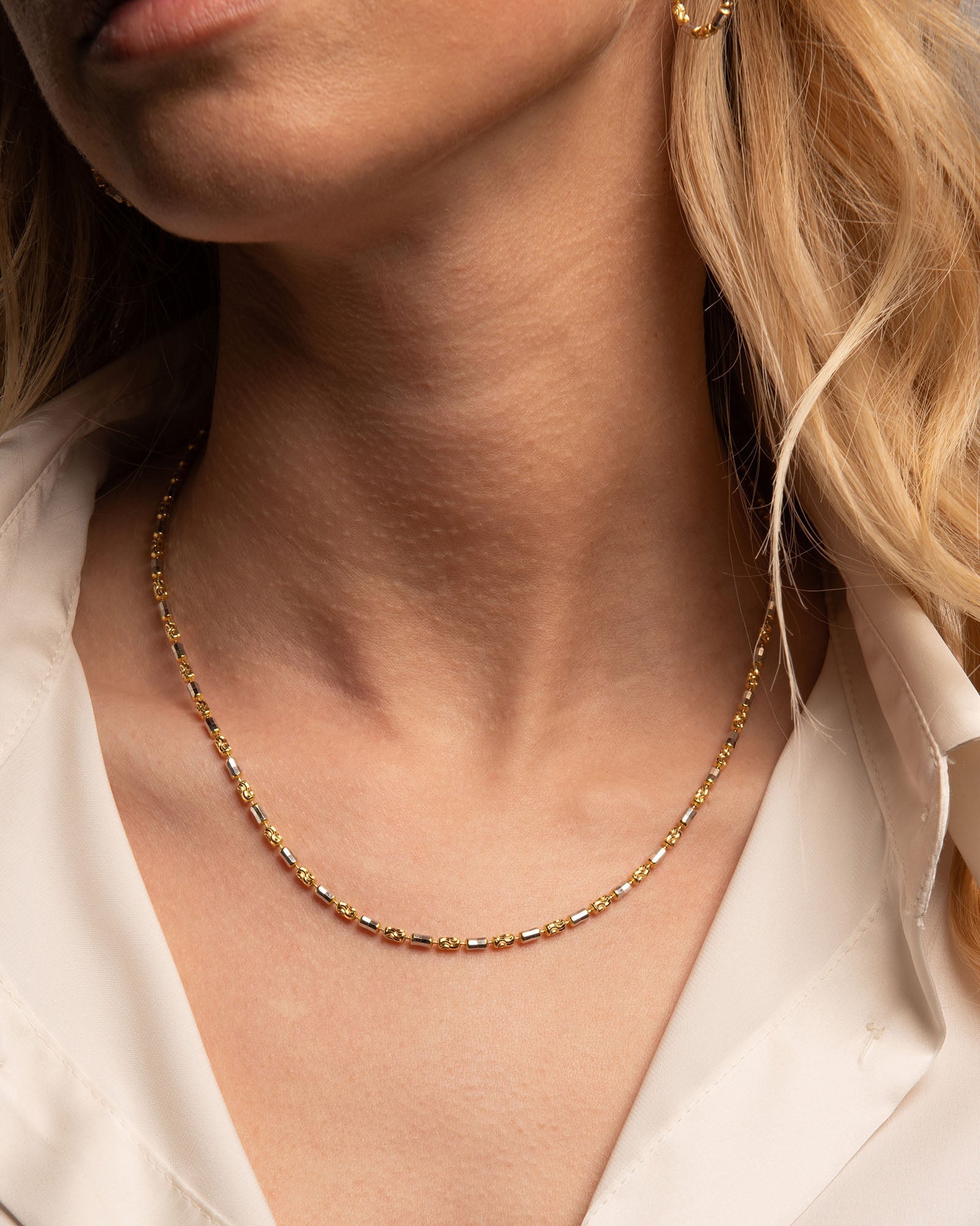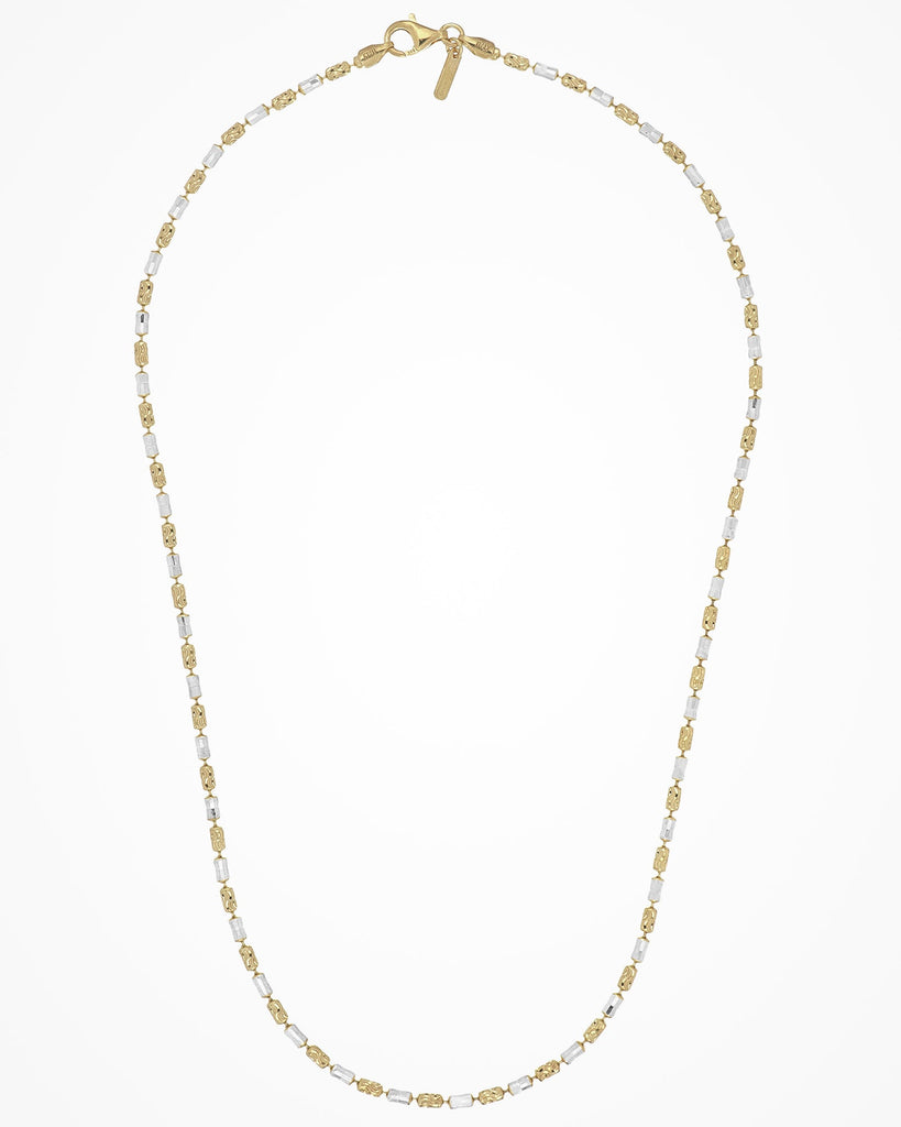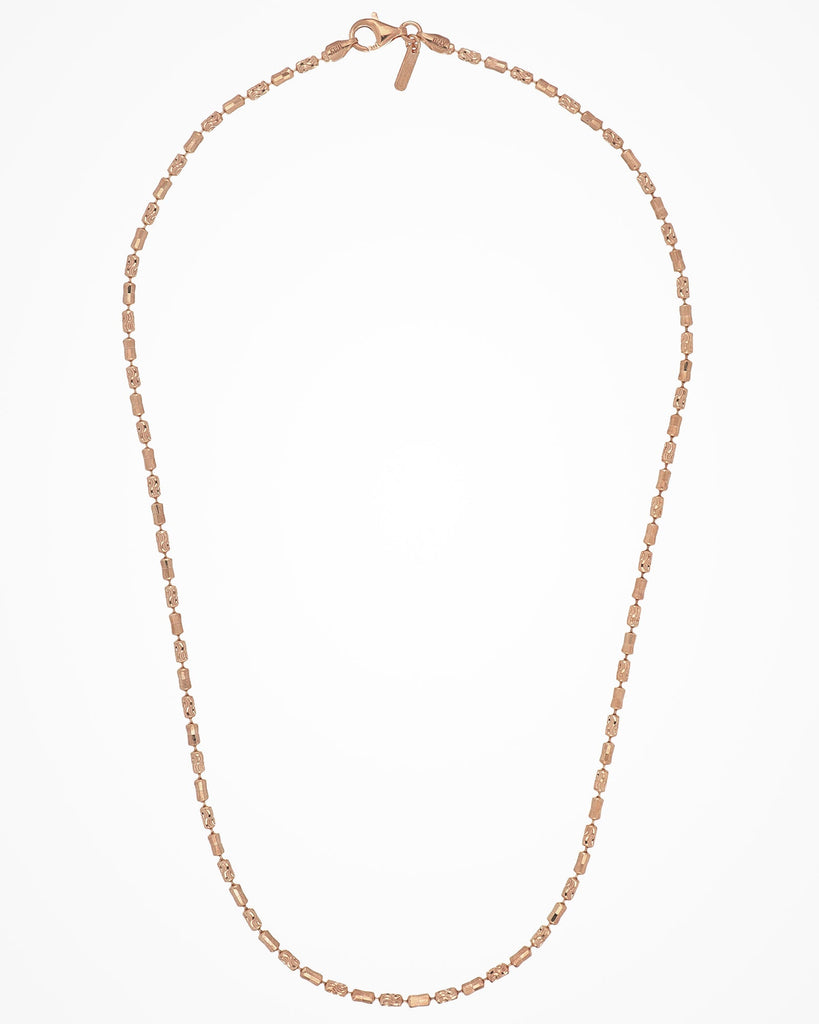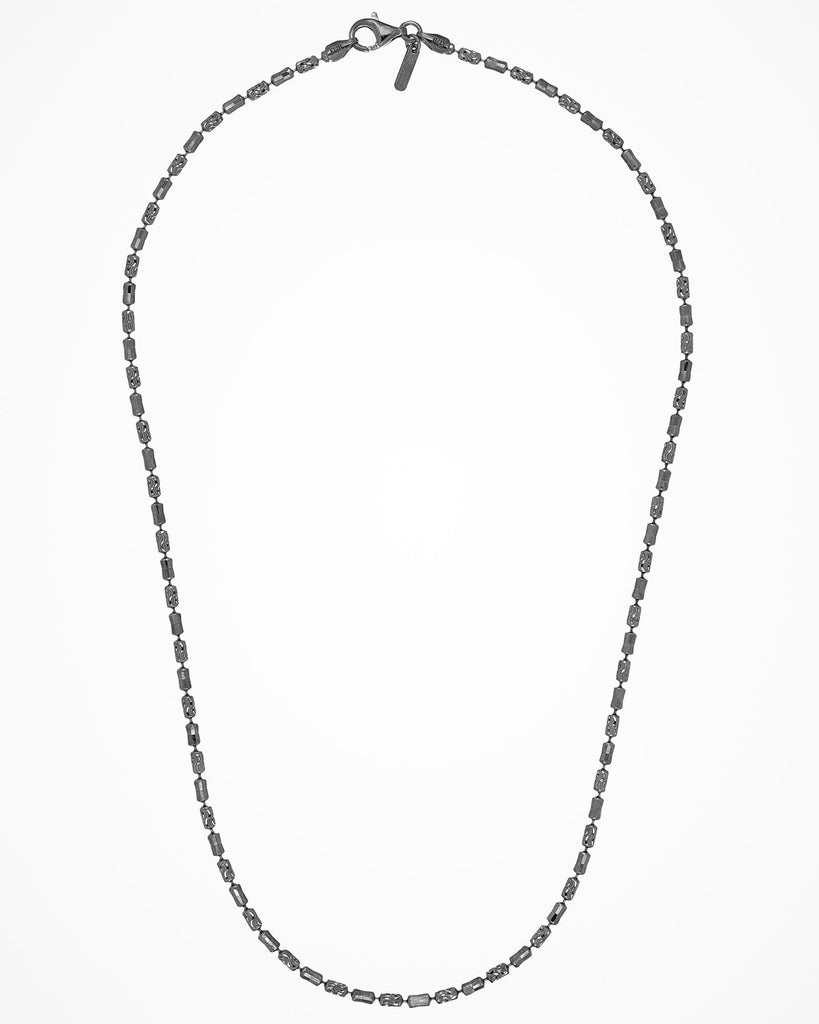 Silver necklace with tiny diamond-cut cylinders which provide a longlasting gleaming effect.