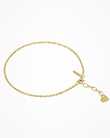 Silver anklet with tiny cylinders linked by a slim chain. The diamond-cutting gives each element a longlasting gleam.