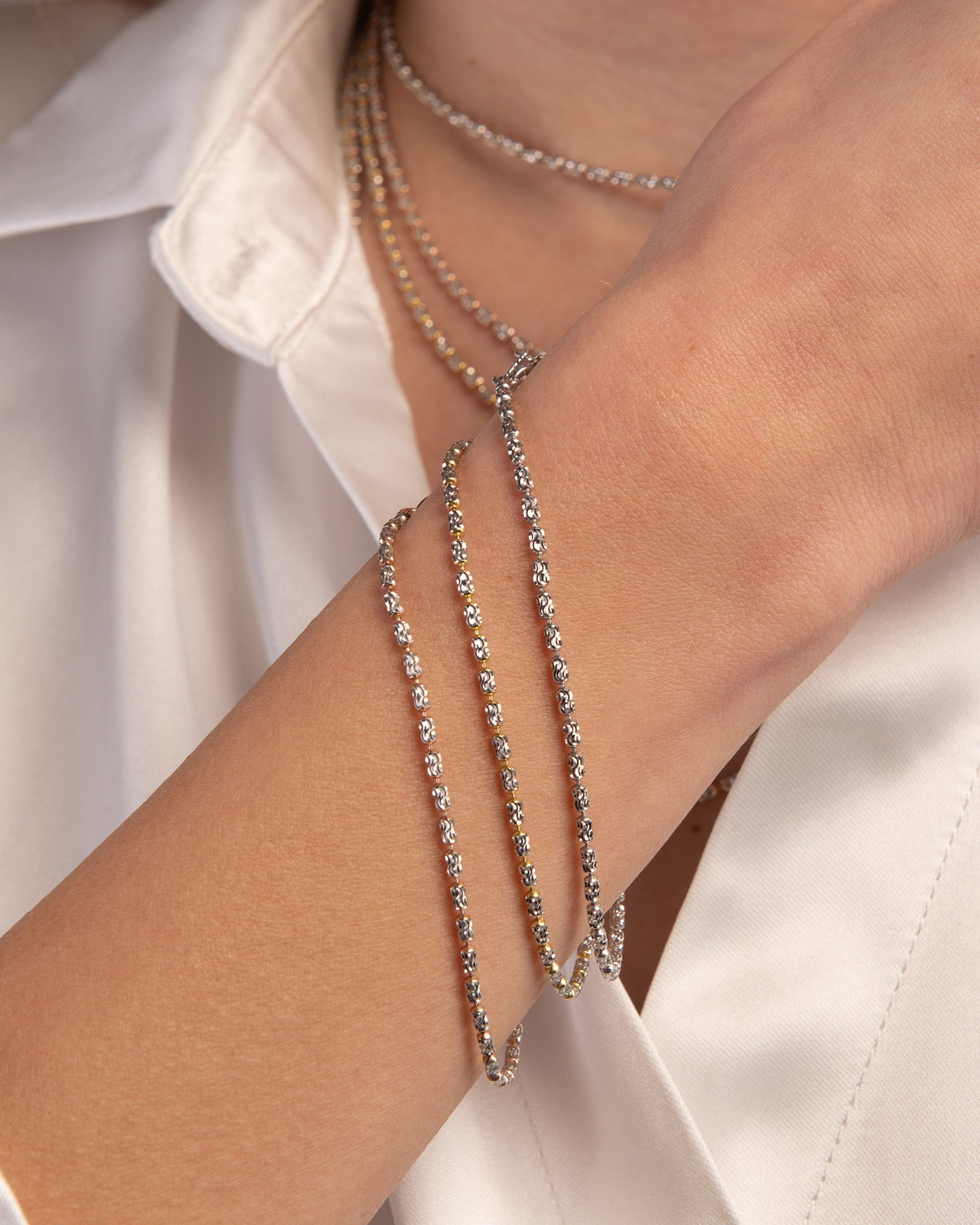 Silver bracelet made of diamond-cut cylinders which feature a longlasting shine.