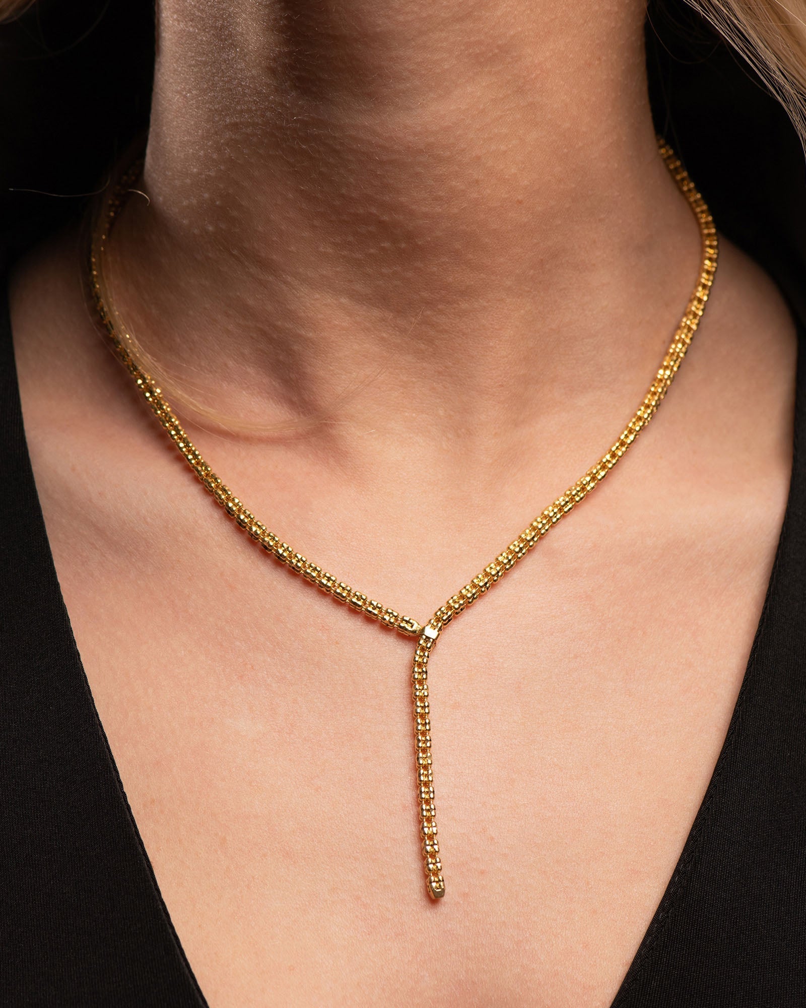 Silver necklace made of four thin bead chains linked together. The diamond-cut beads provide a unique gleaming effect that lasts in time.