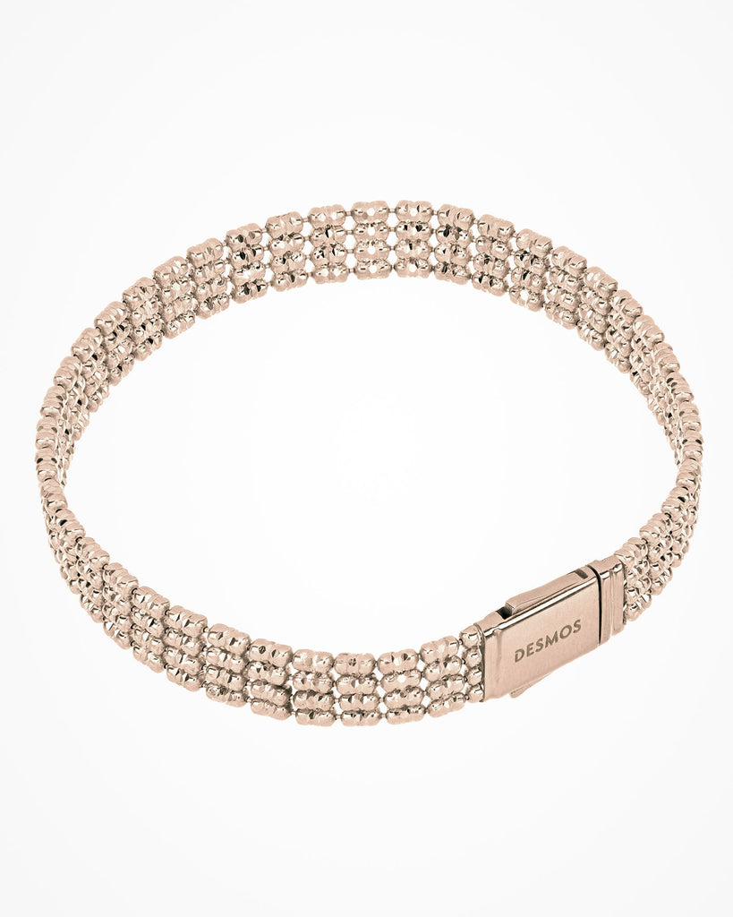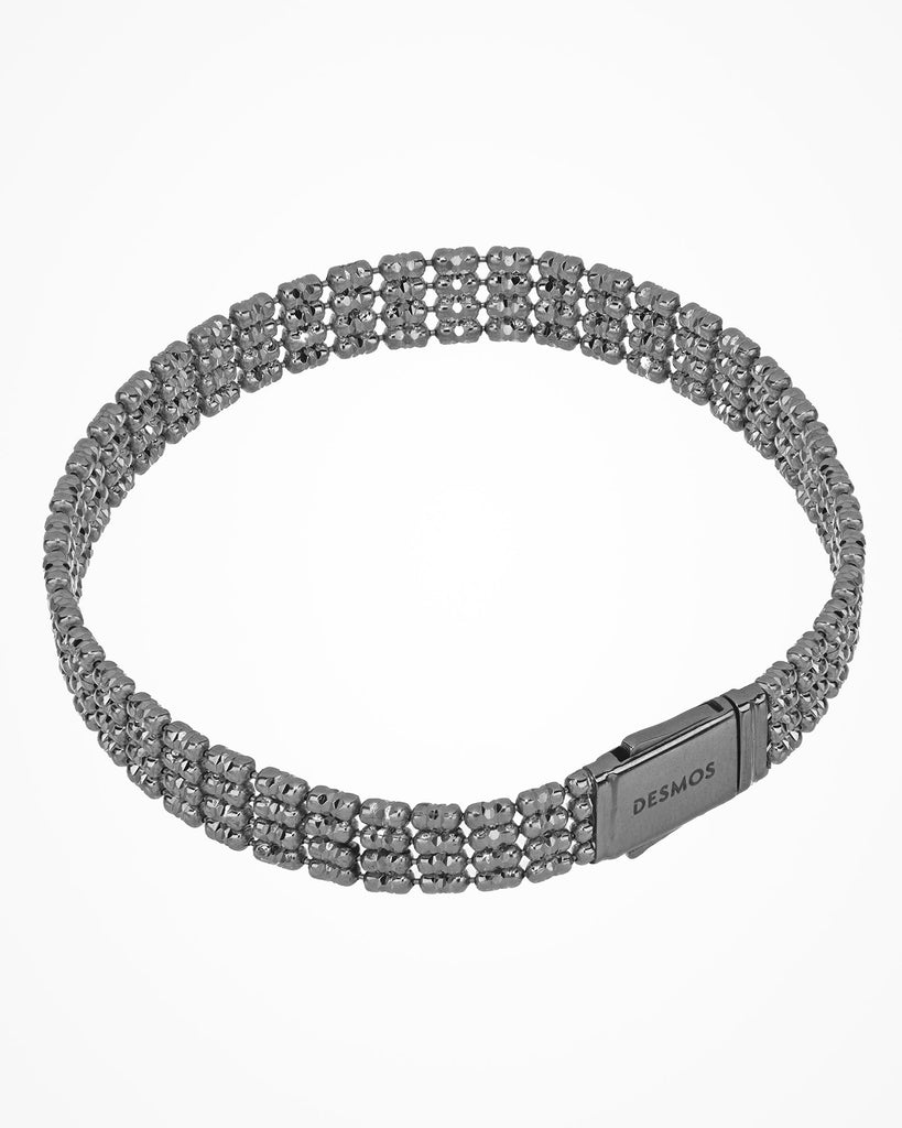 Multi-strand silver bracelet made of tiny diamond-cut beads which provide a unique gleaming effect that lasts in time.