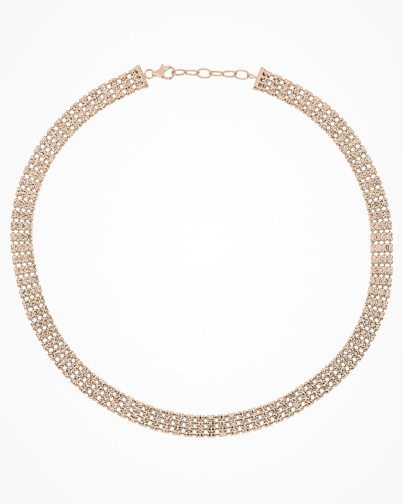 Multi-strand silver necklace made of tiny diamond-cut beads which provide a unique gleaming effect that lasts in time.