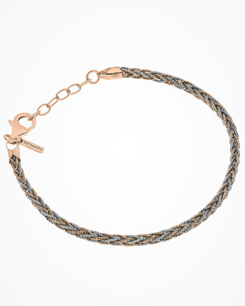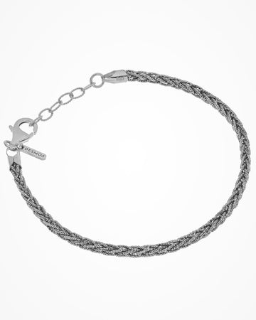 Multi-strand silver bracelet with a braided chains that provide thickness and a comfortable semi-rigid feel.