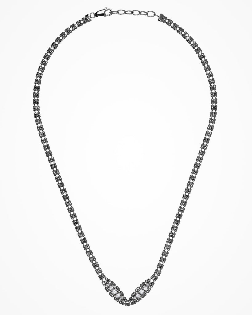 Silver necklace made of four diamond-cut bead chains linked together and embellished with zircon-set features.