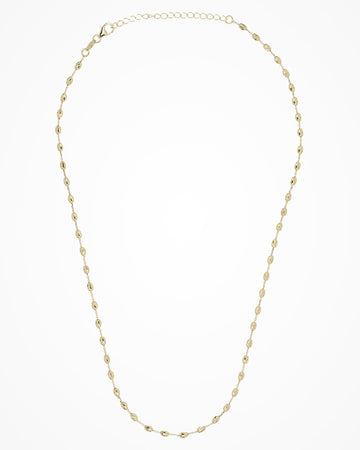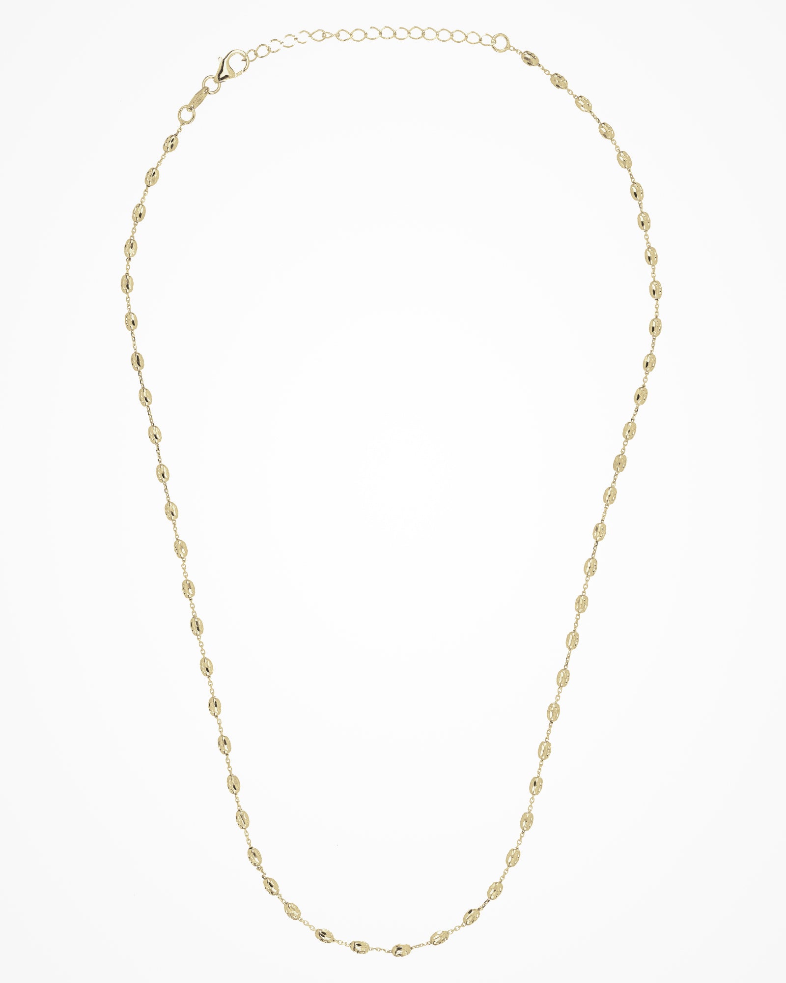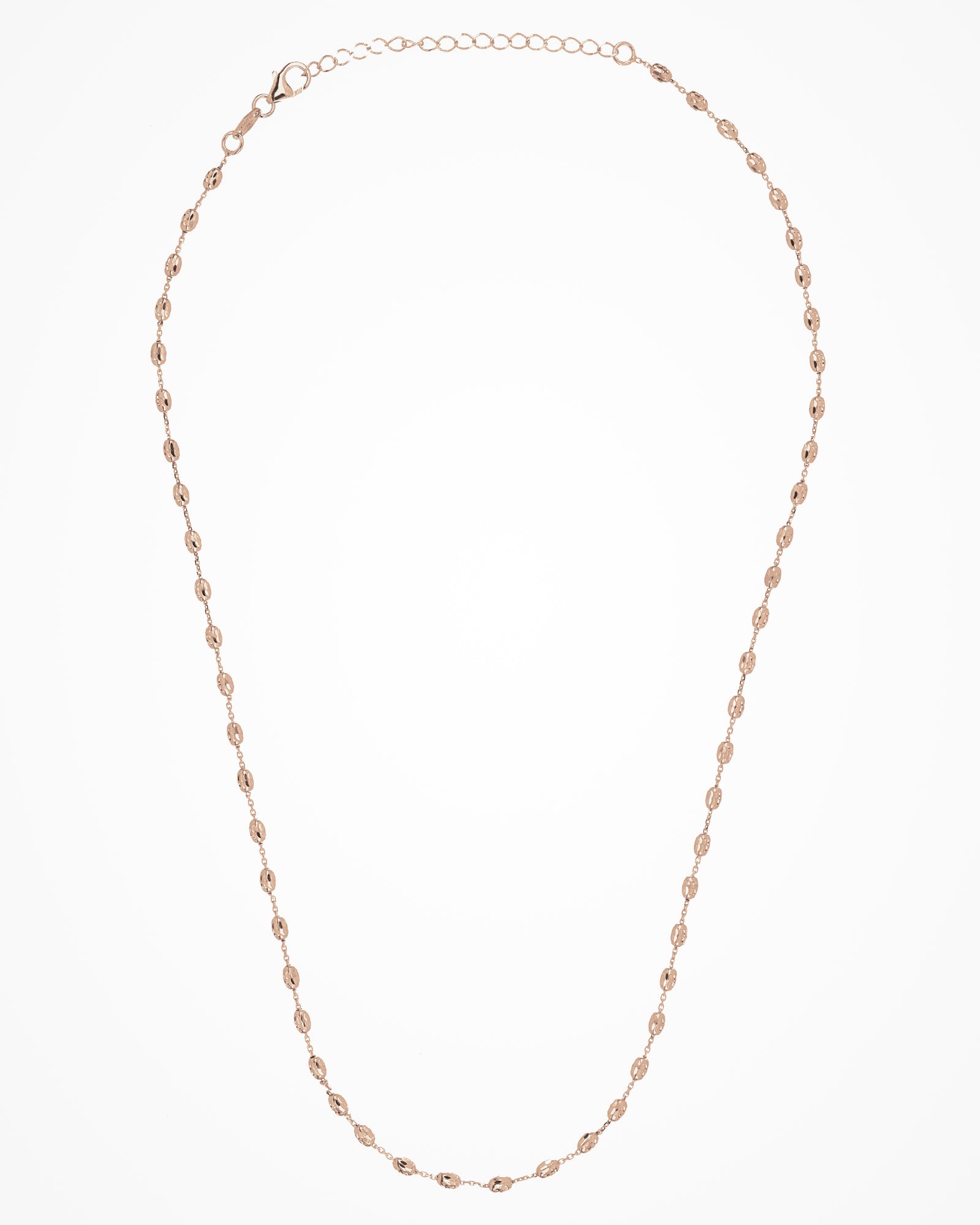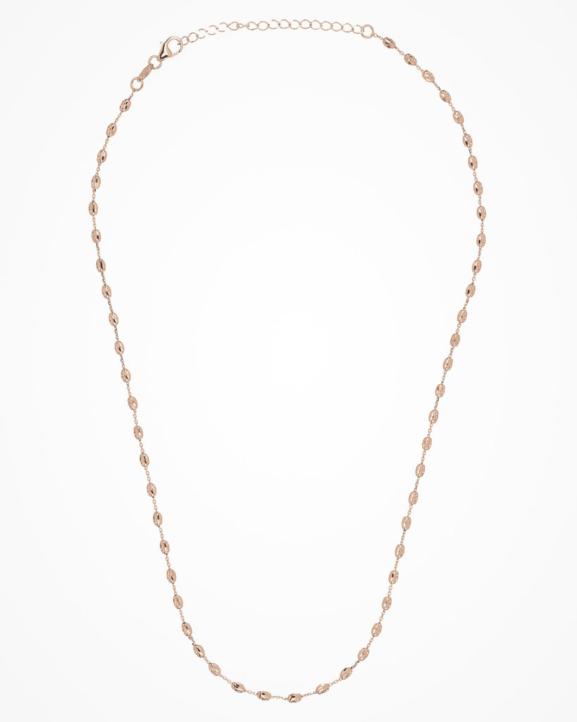 Ball necklace with oval elements in 18 KT gold. Developed internally with Silk diamond technique, it is characterized by brightness and brilliance.