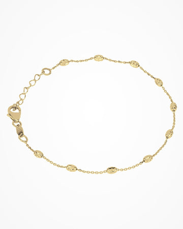Ball bracelet with oval elements engraved in 18 KT gold. Developed internally with a diamond-cutting technique, it is characterized by brightness and brilliance.