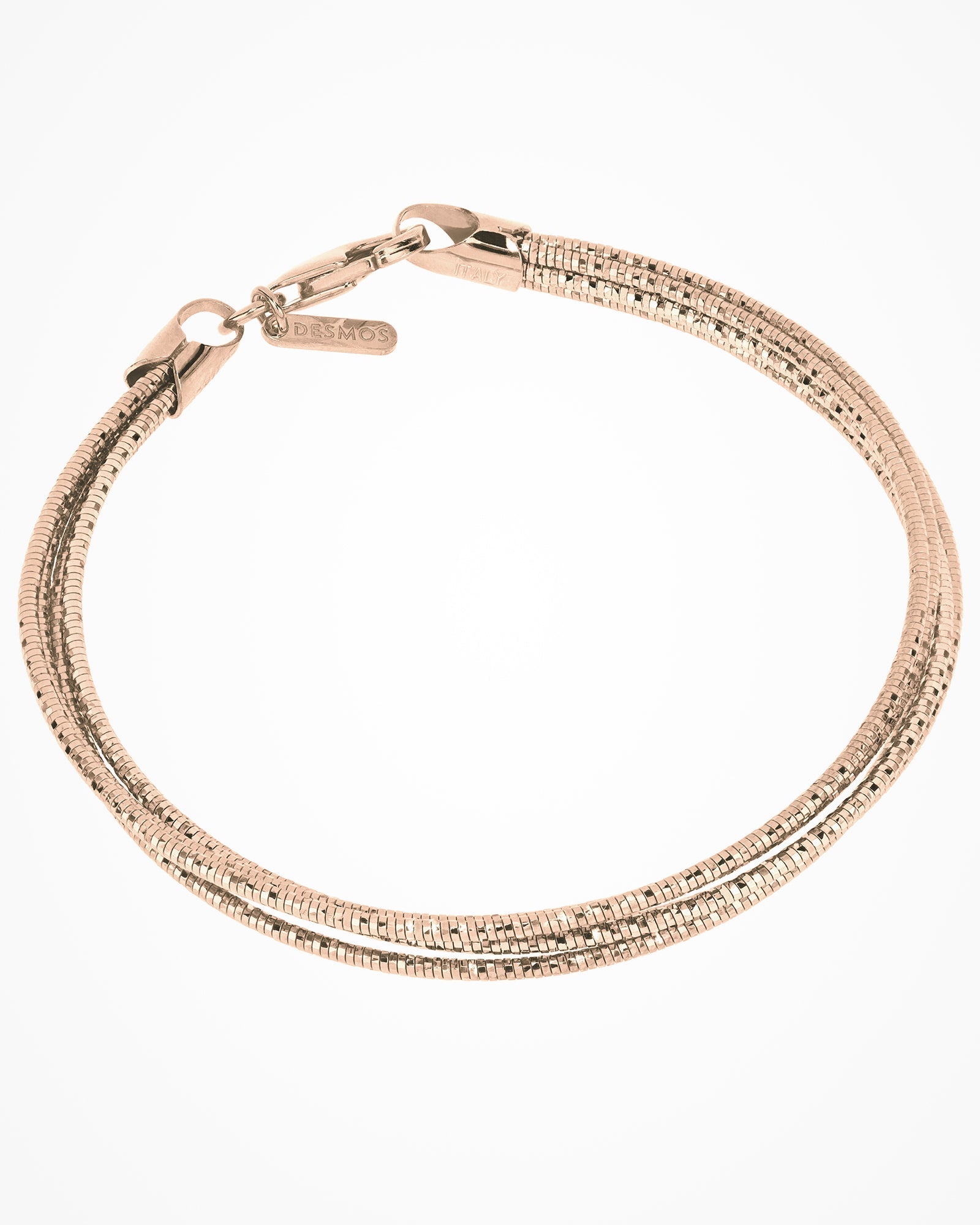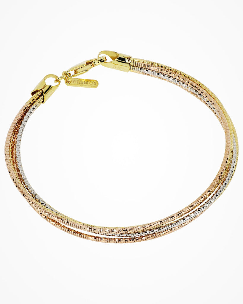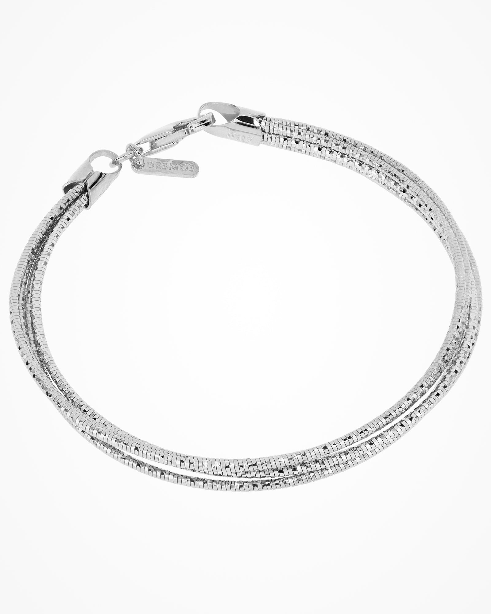 Multi-strand silver bracelet with semi-rigid effect which provides a round shape and a elegantly simple look.