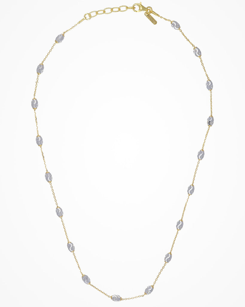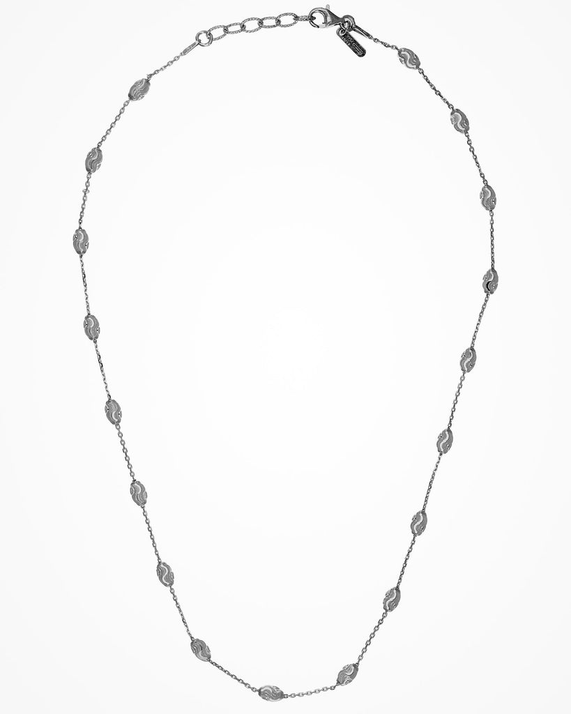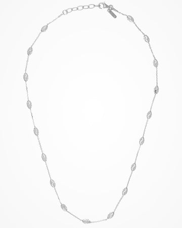 Silver necklace with large oval elements linked by a thin chain. The diamond-cutting technique provides an additional touch of shine.