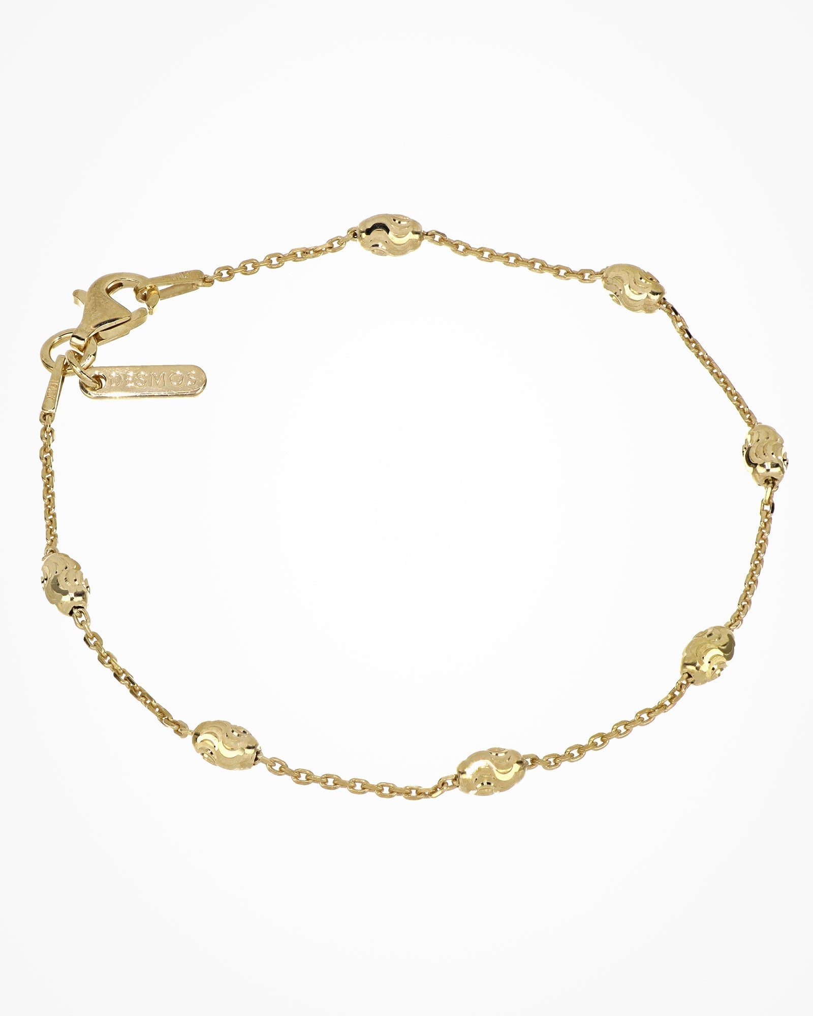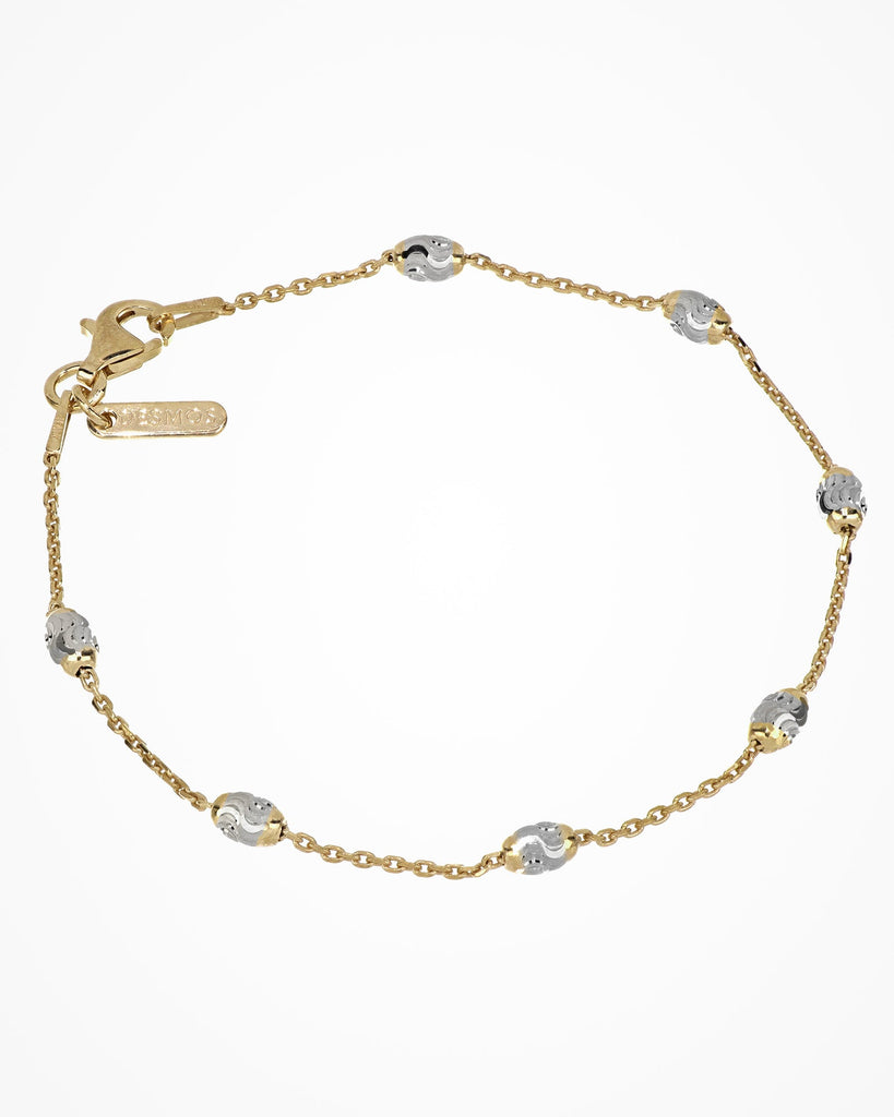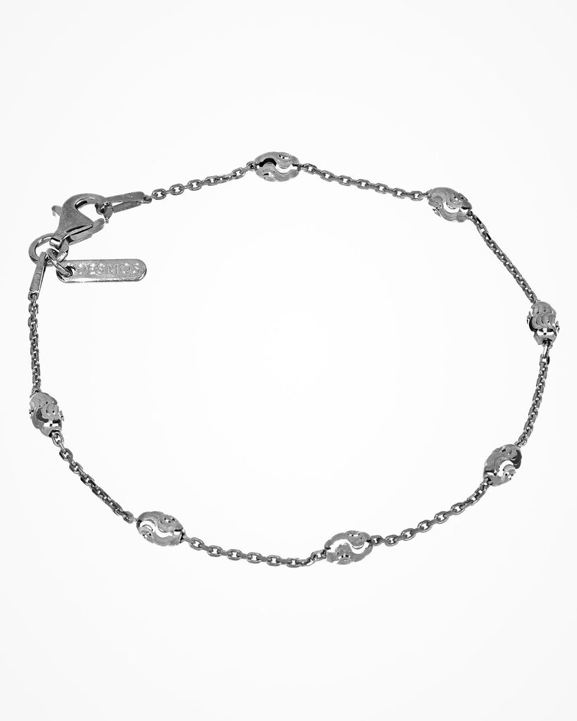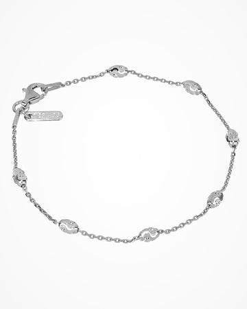 Silver bracelet with oval elements linked by a thin chain. The diamond-cutting technique provides an additional touch of shine.