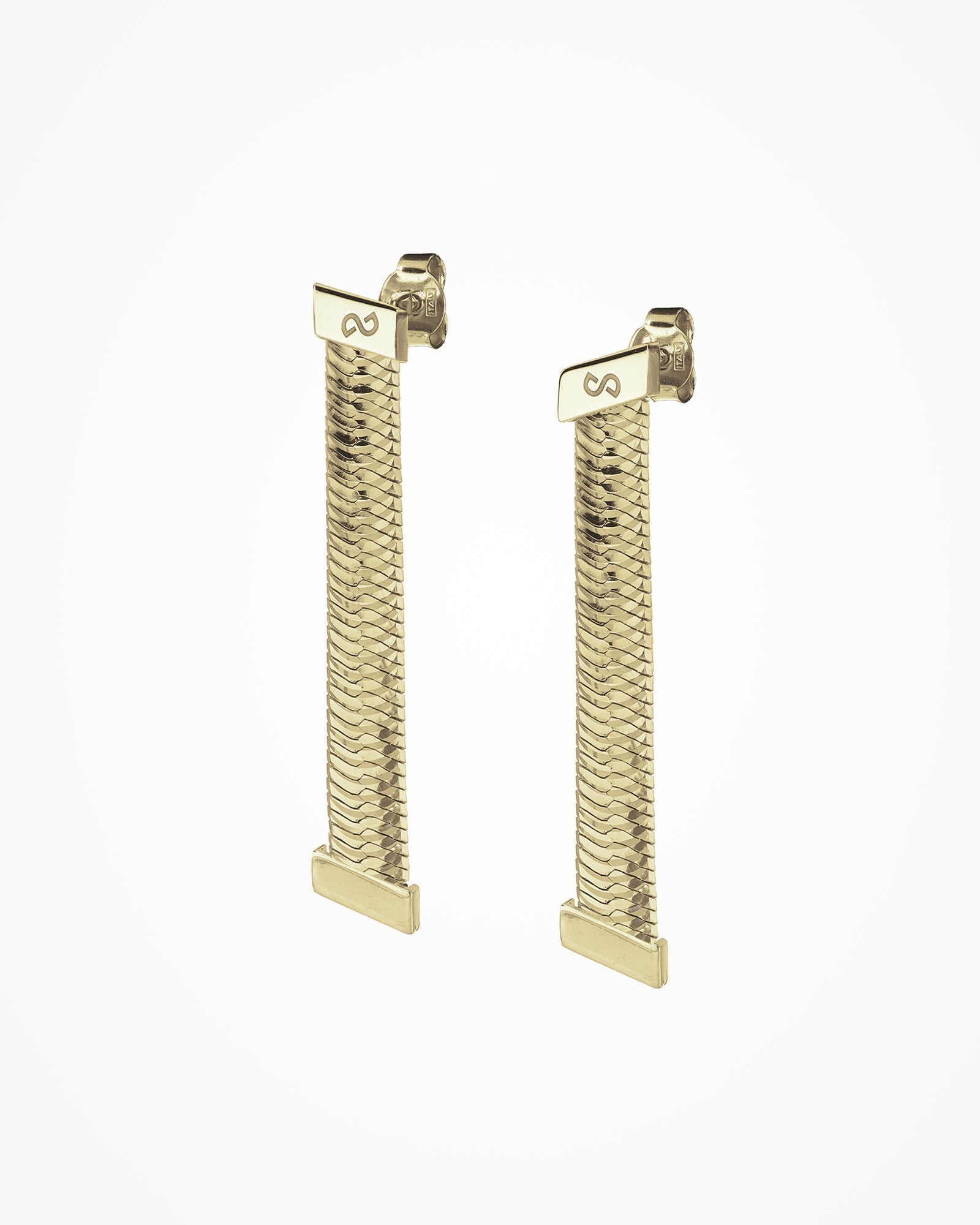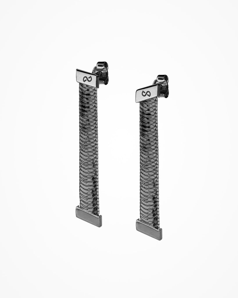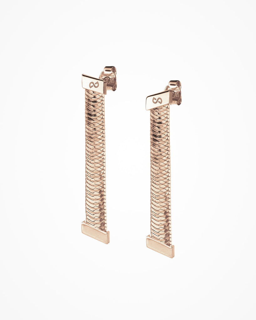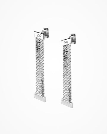Silver pendent earrings with flat sinuous chain and incredibly shiny effect.